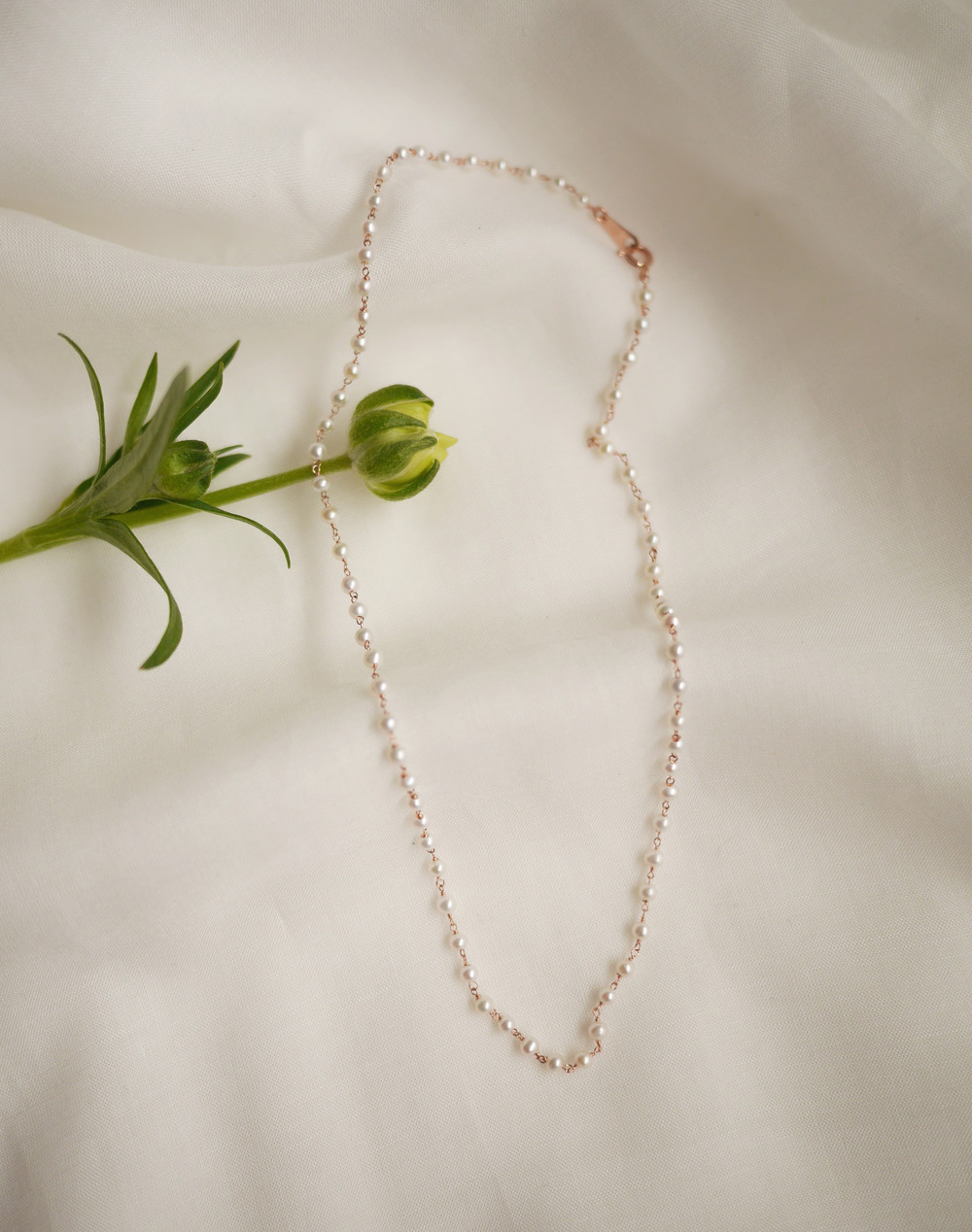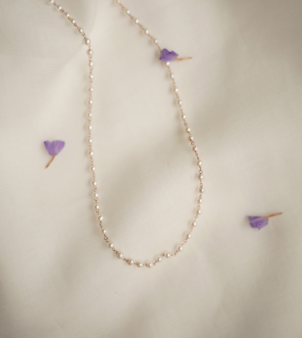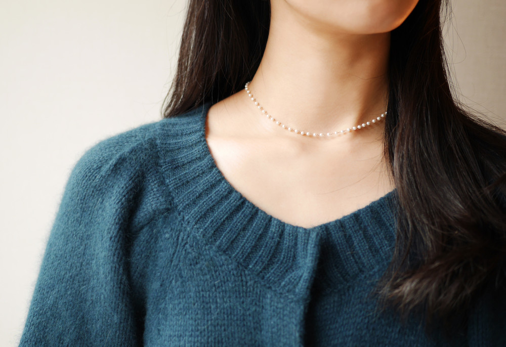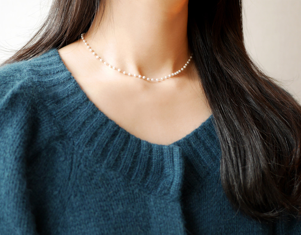 2.8mm 담수진주가 하나하나 엮여진 비드 목걸이입니다.