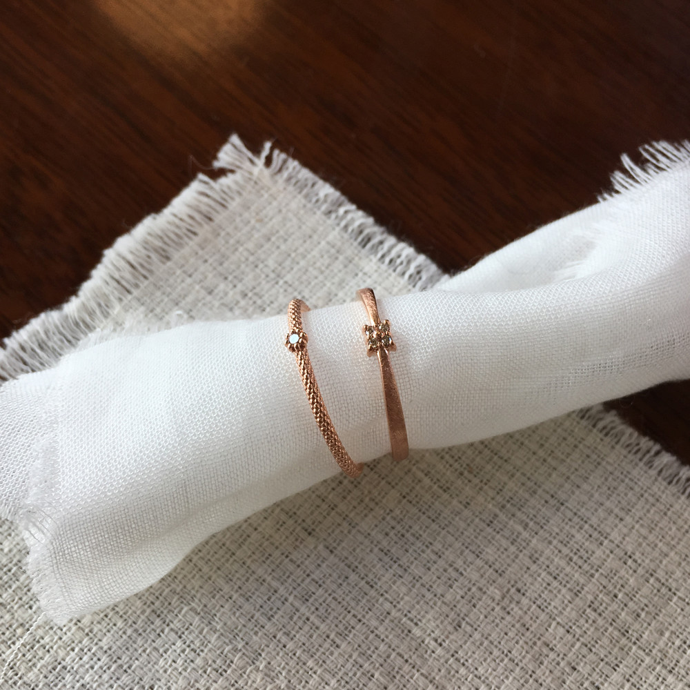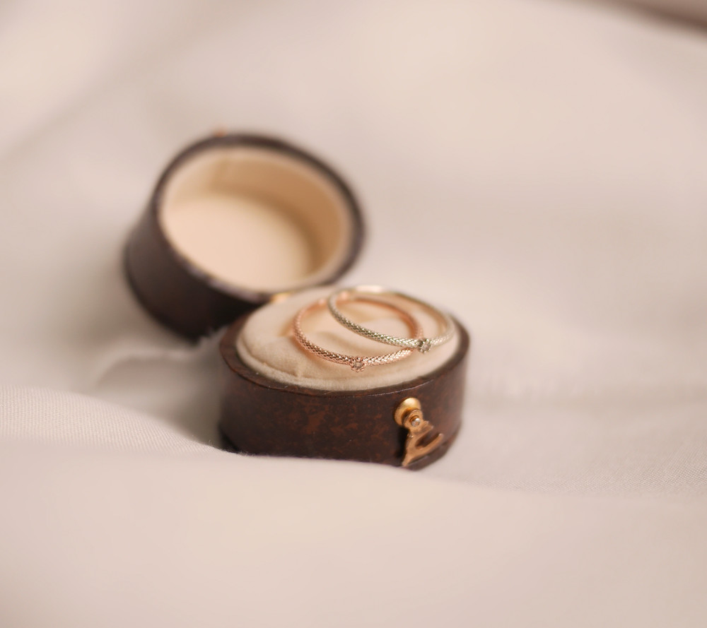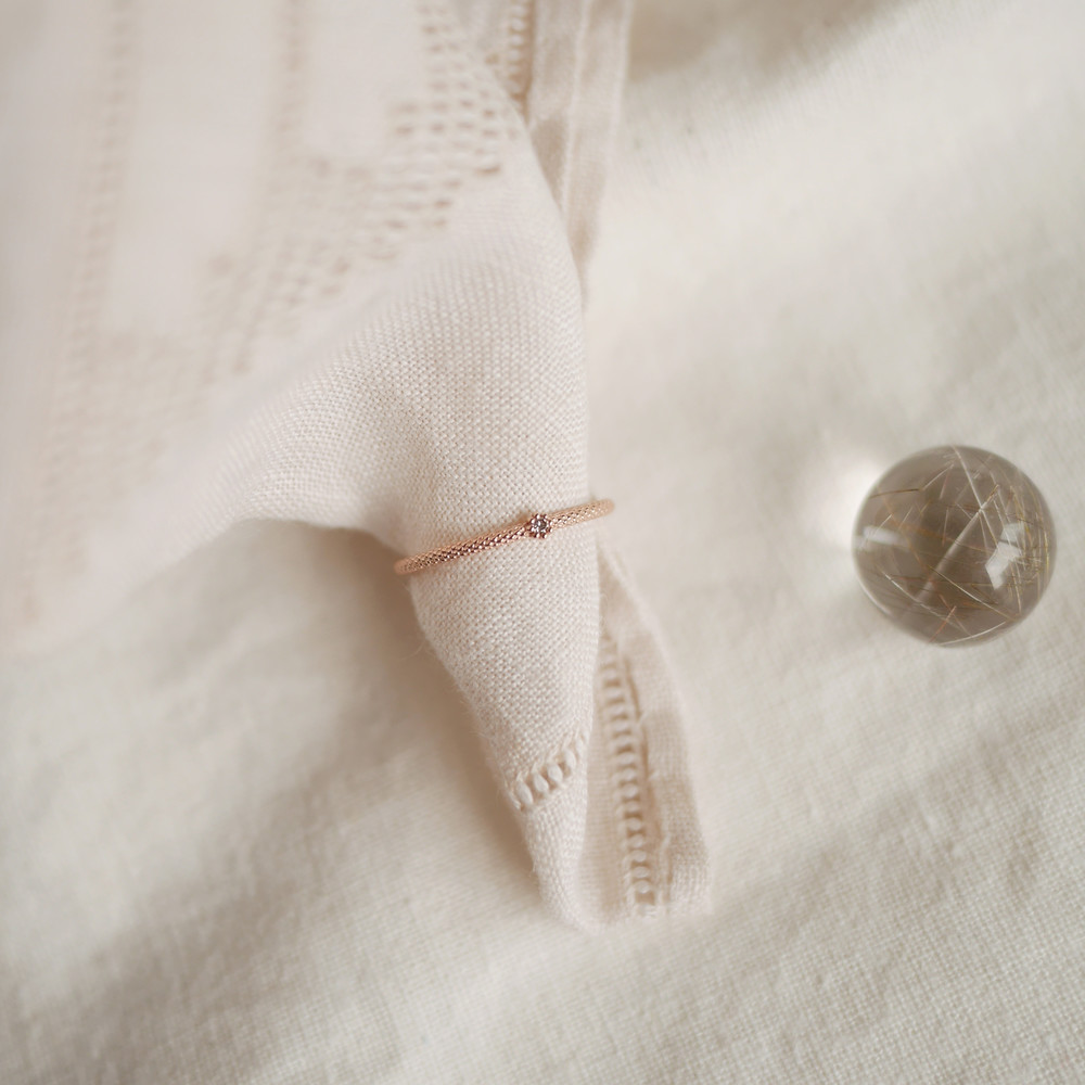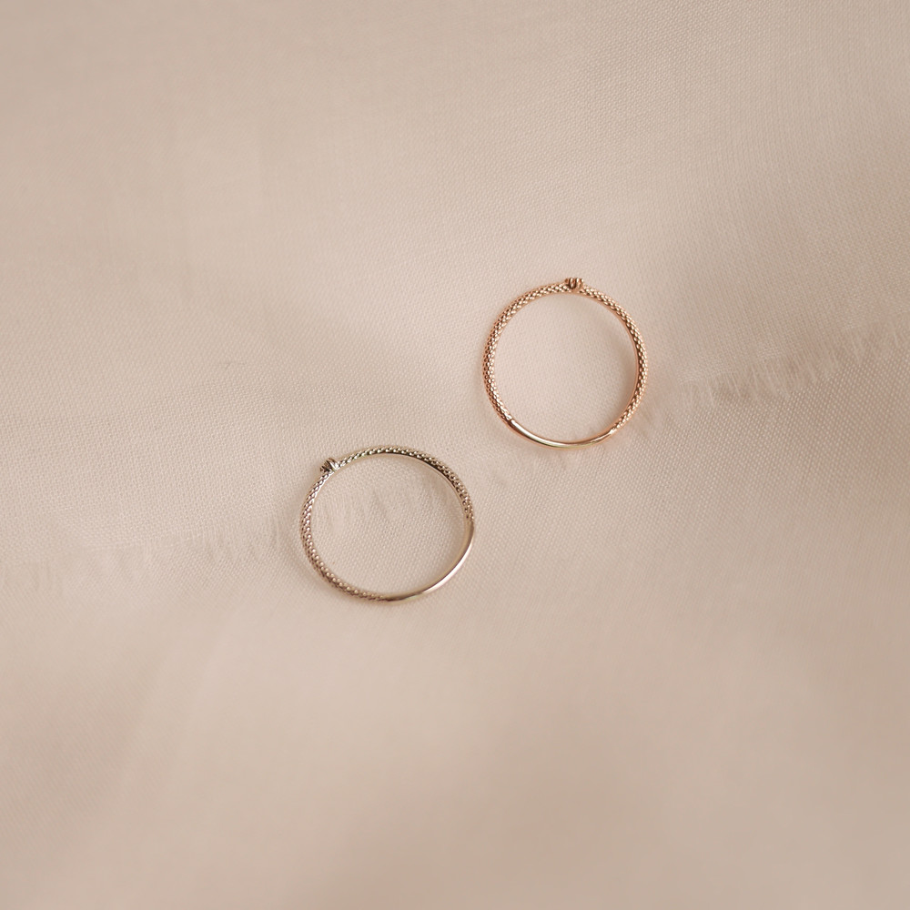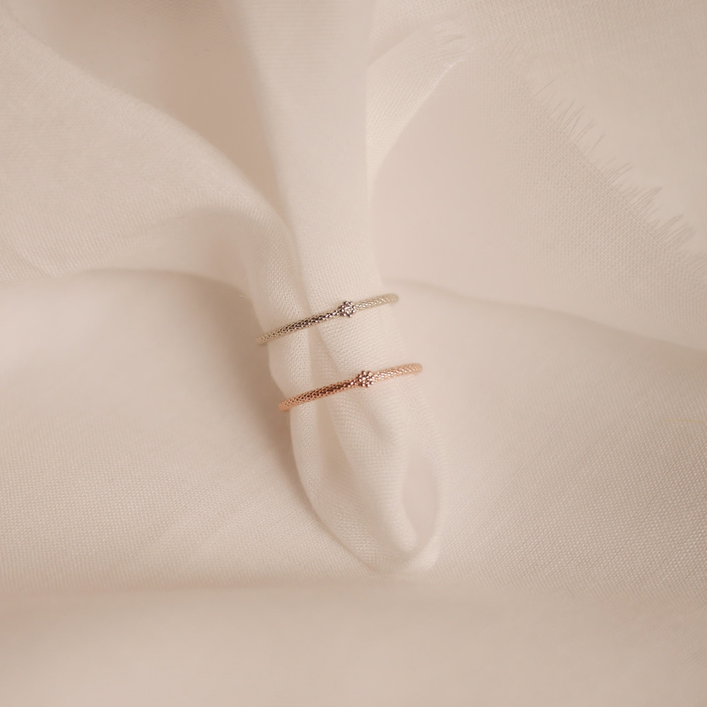 가죽느낌의 텍스쳐 밴드에 1.5mm 샴페인 다이아몬드가 세팅된 깔끔한 반지입니다