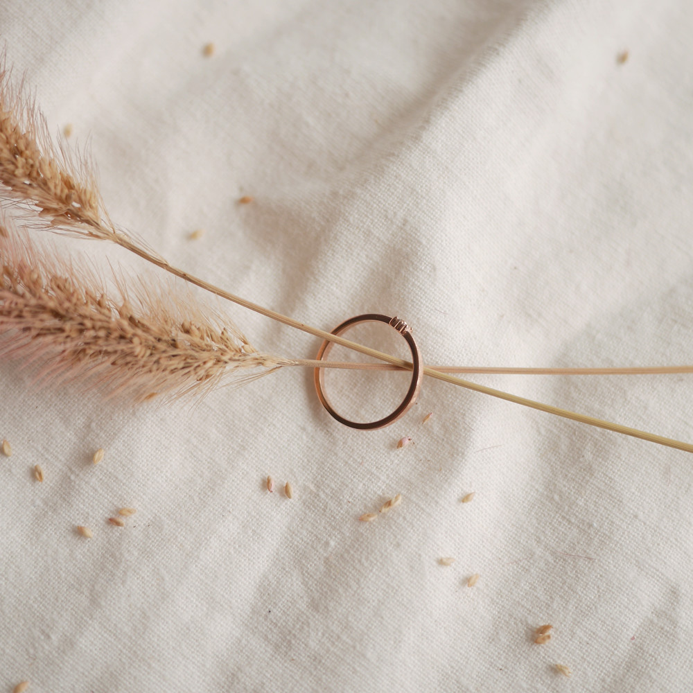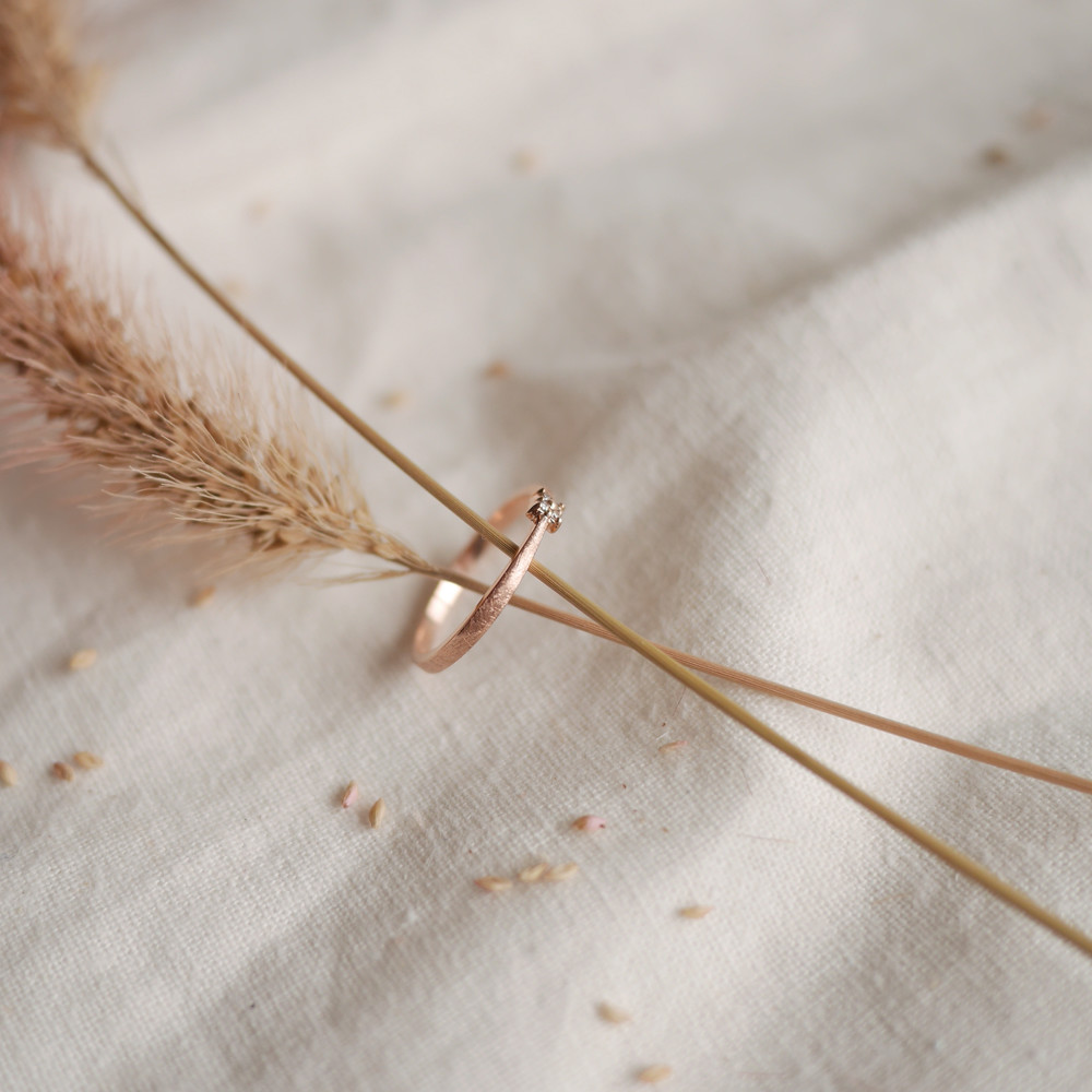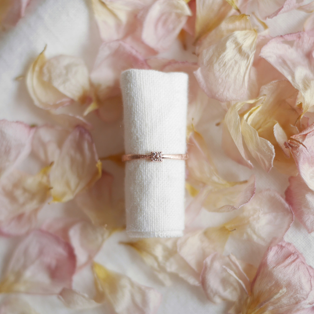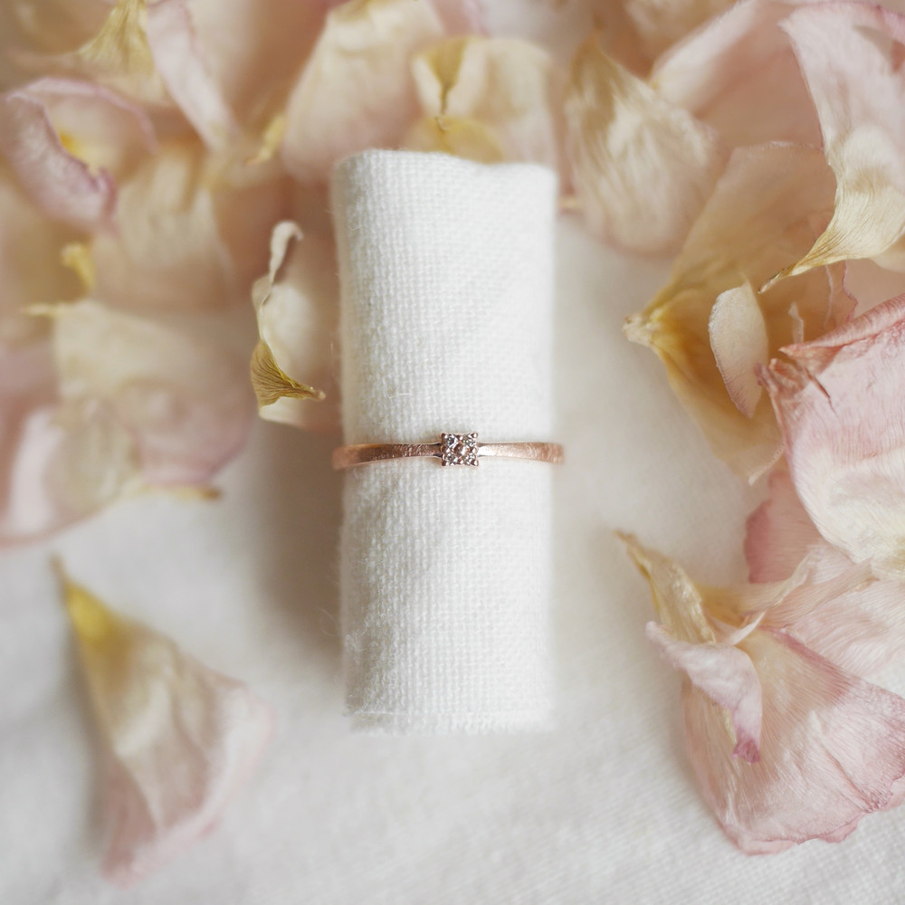 린넨같은 패브릭 텍스쳐 밴드에 샴페인 다이아몬드 4피스를 세팅한 반지입니다.