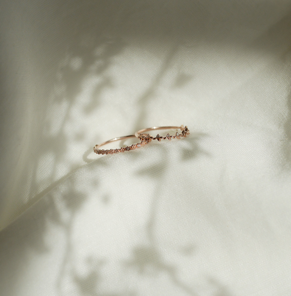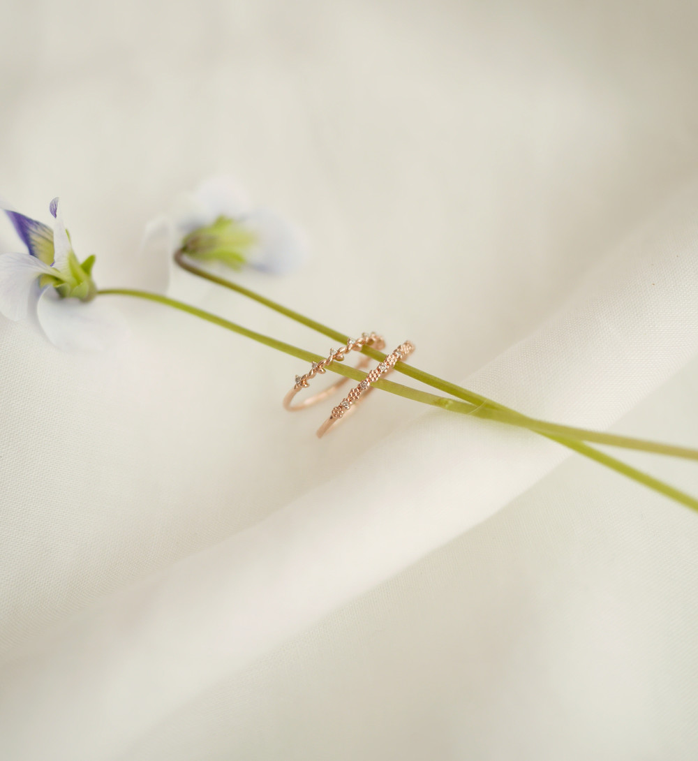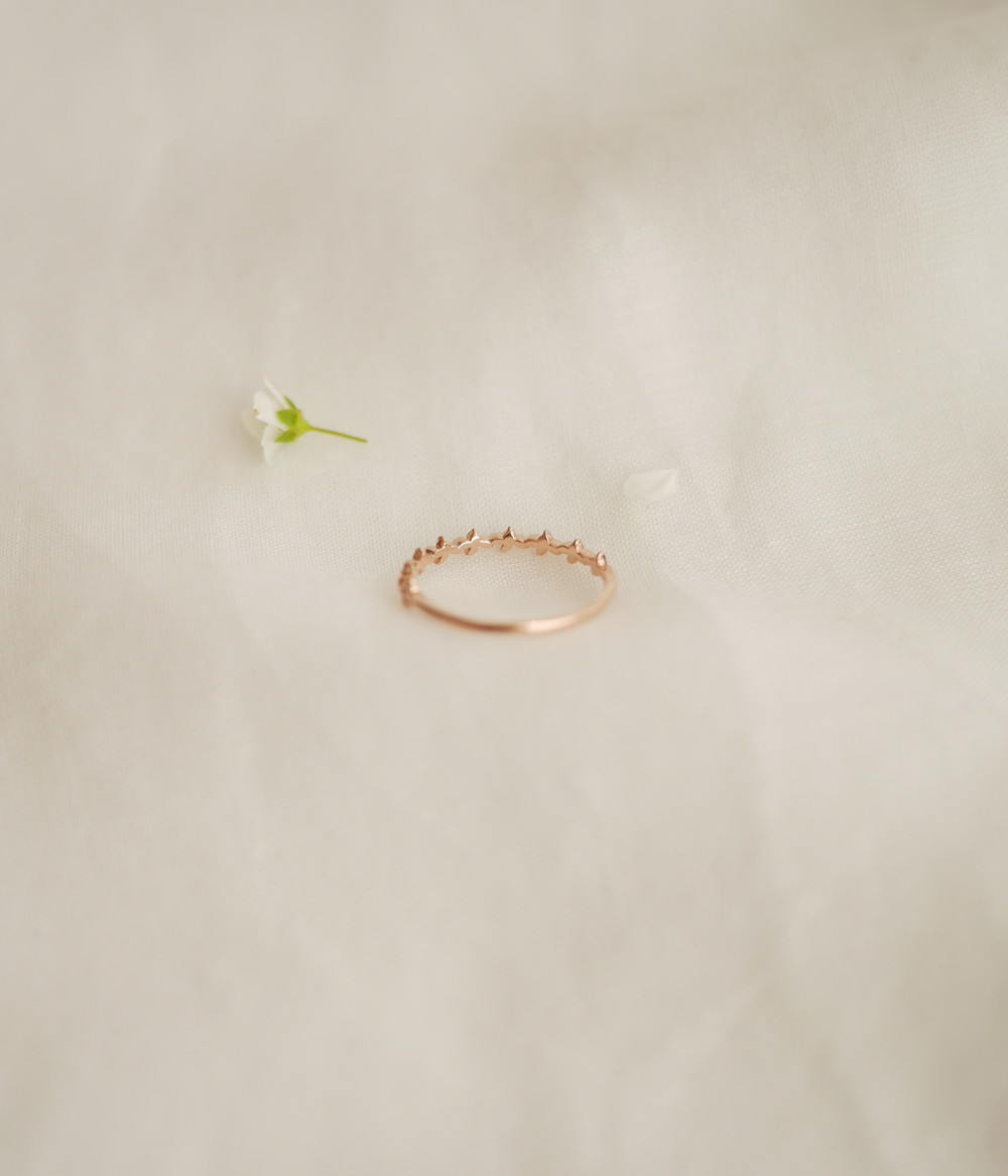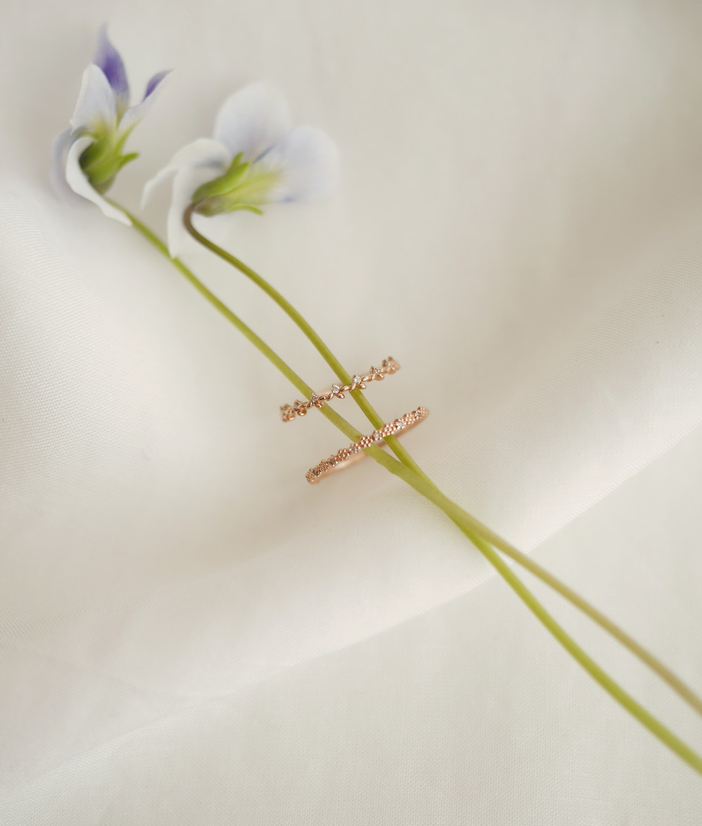 작은 나뭇잎 모티브와 샴페인 다이아몬드가 잔잔한 패턴으로 어우러진 반지입니다