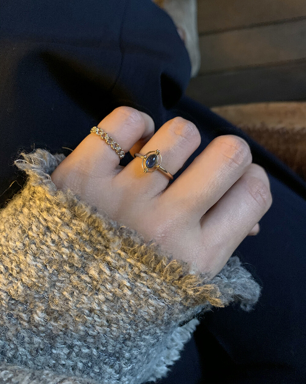 유색보석이 세팅된 반지들과 매치하시면 포에뜨 무드가 듬뿍 담기더라구요