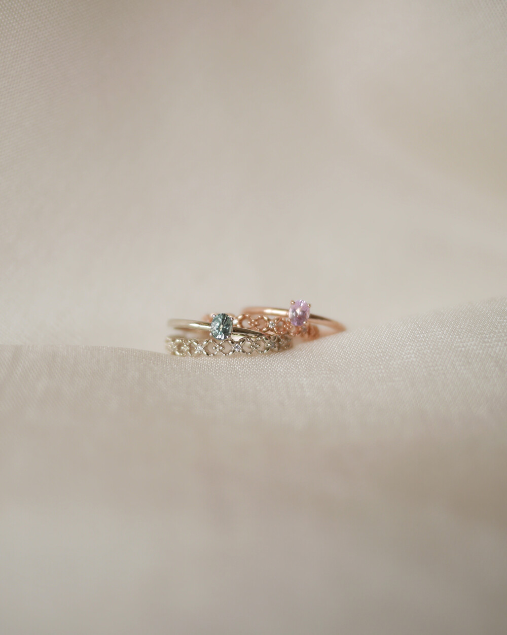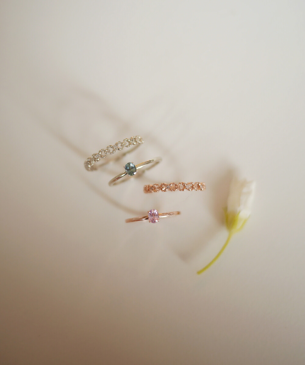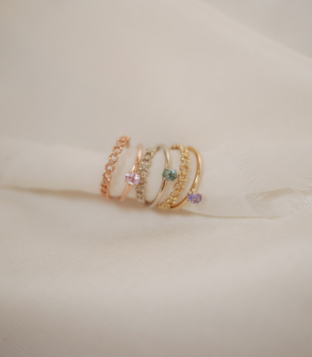 poetic ring, pearl crown ring, opal crown ring, 그리고 palette sapphire ring과 특히 잘 어울립니다