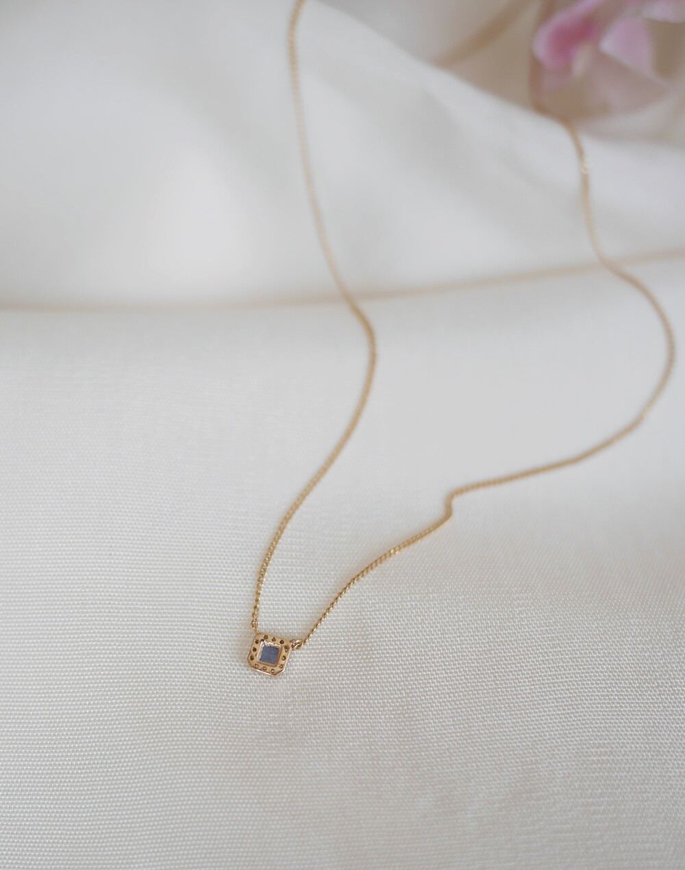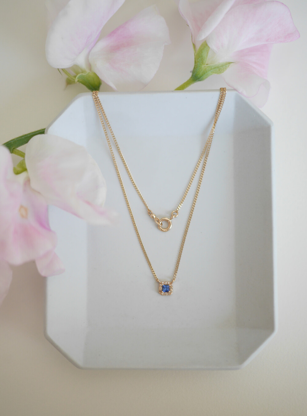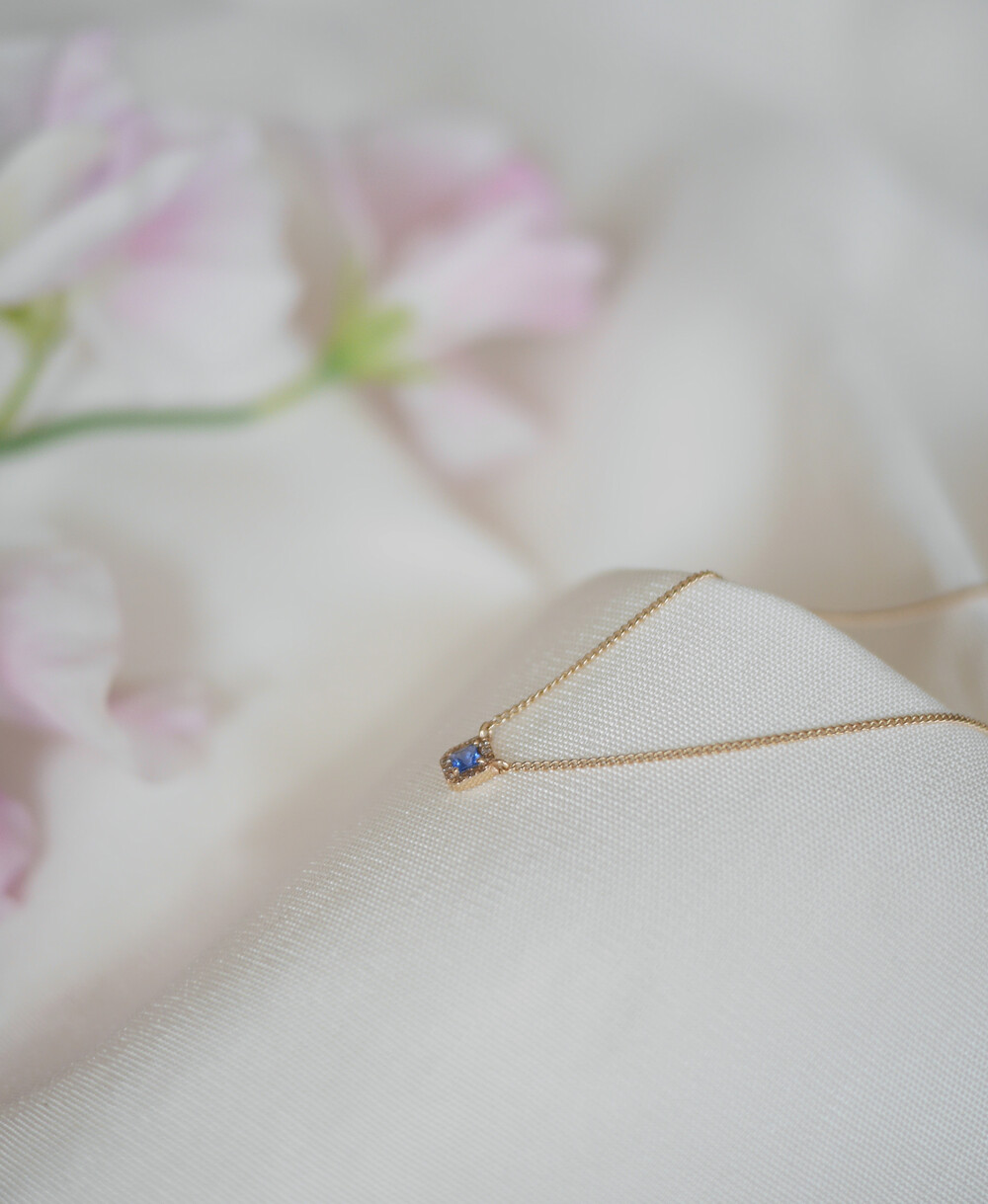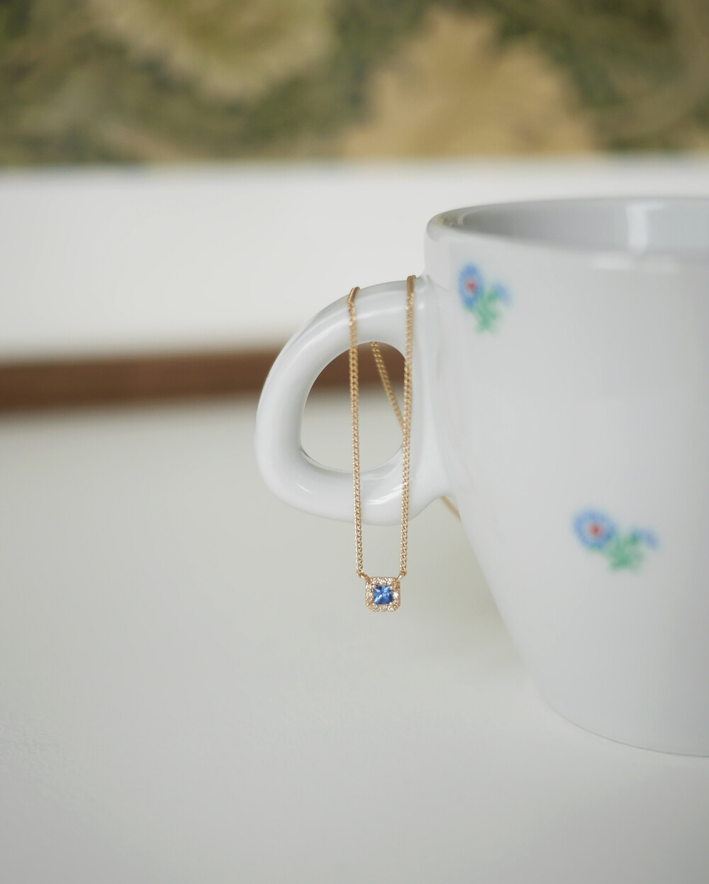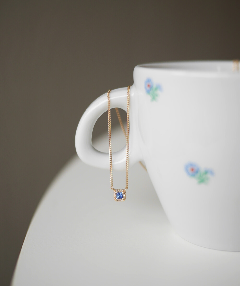 클래식한 헤일로 디자인의 블루 사파이어 & 다이아몬드 목걸이입니다