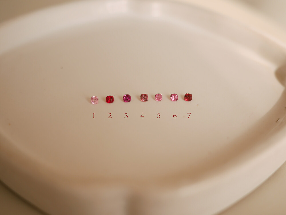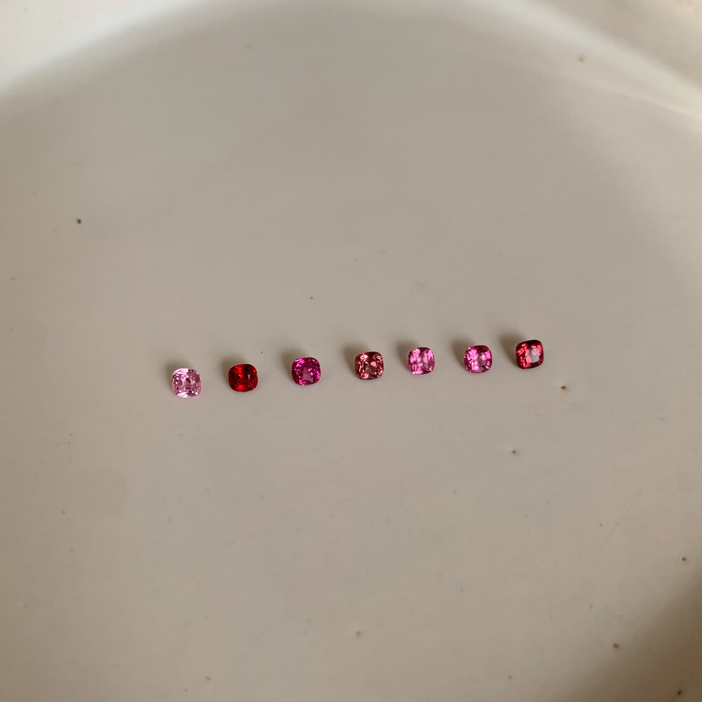 최대한 깨끗하고 컬러가 아름다운 3mm 쿠션컷 스톤들을 선별했구요,