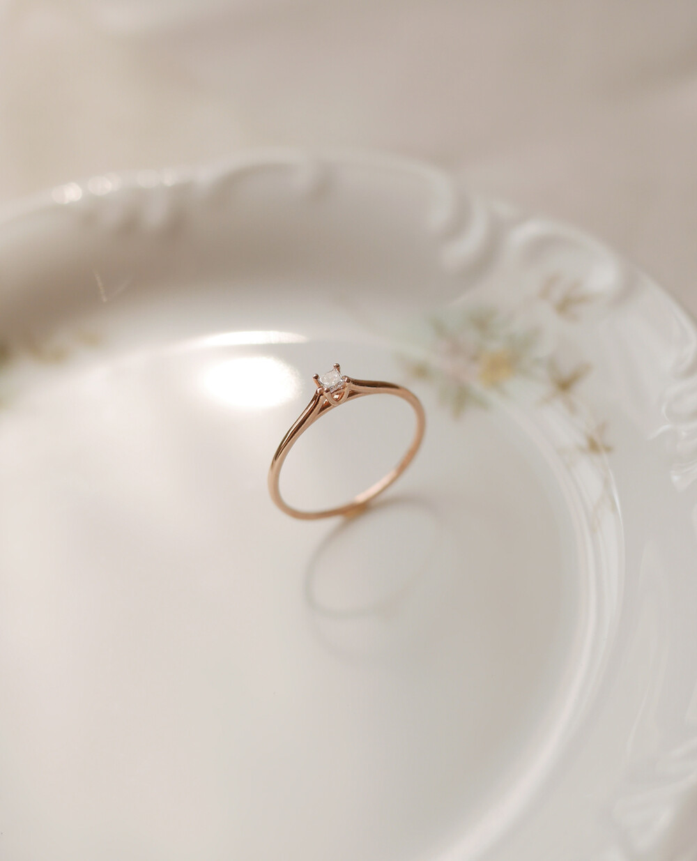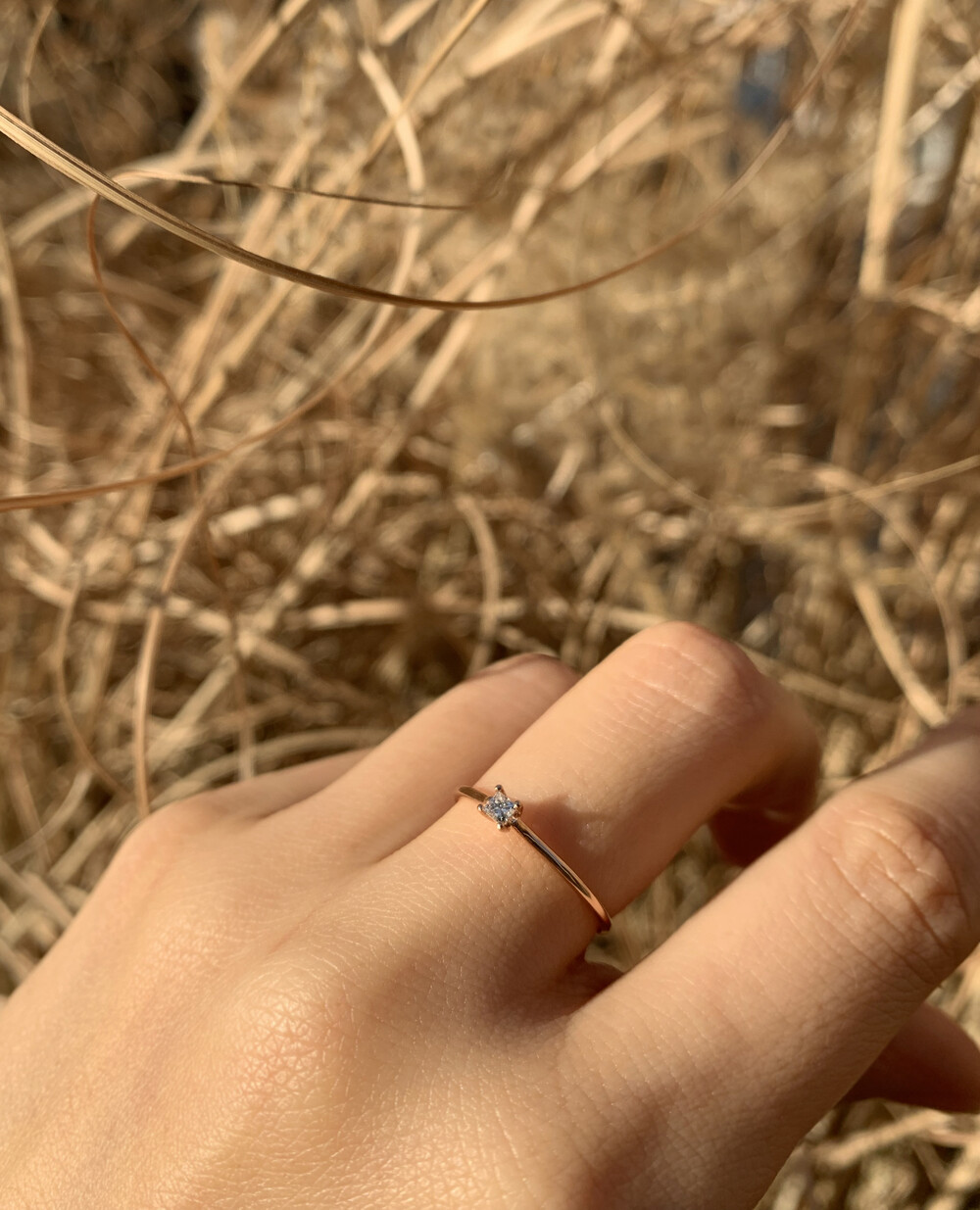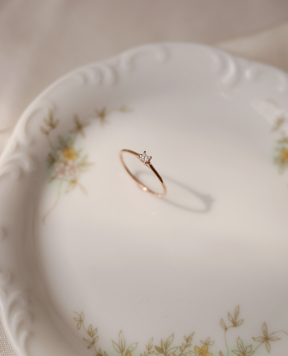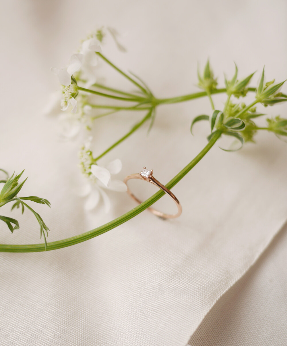 정사각형의 다이아몬드를 솔리테어 세팅한 반지입니다