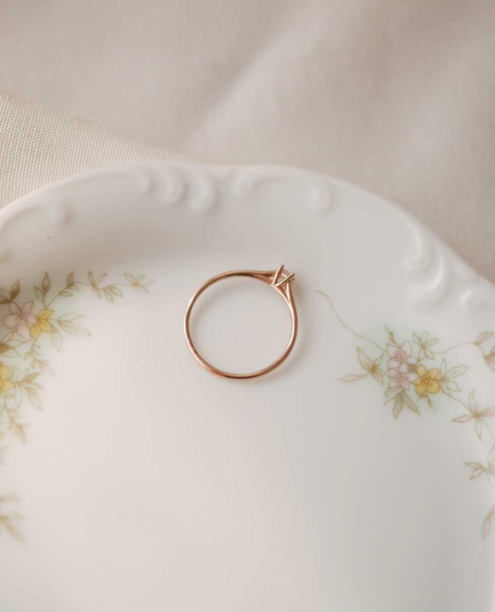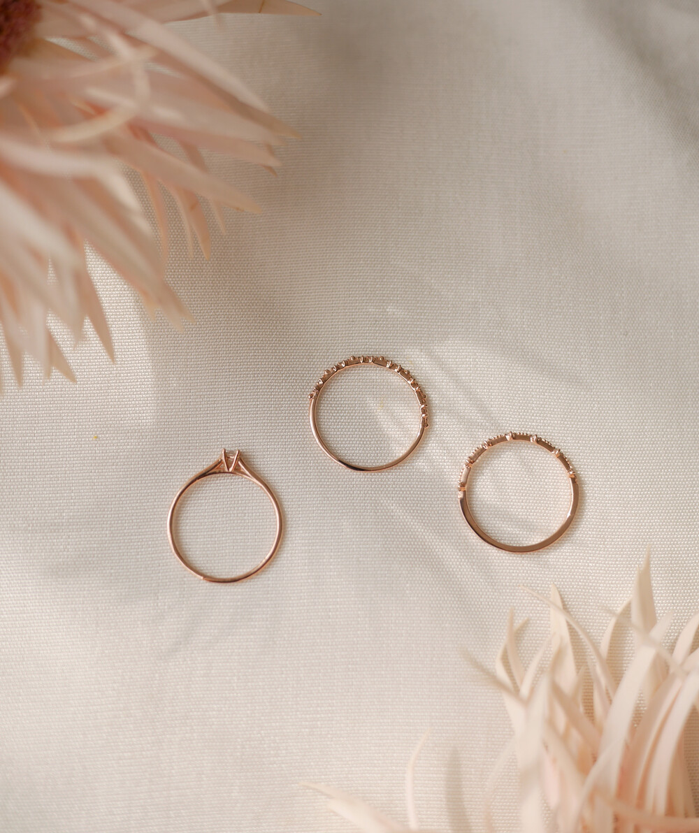 단독으로 착용해도 충분히 아름답지만, 다른 반지와 겹쳐서 착용할 때를 고려해 측면의 높이를 조금 높여주었습니다