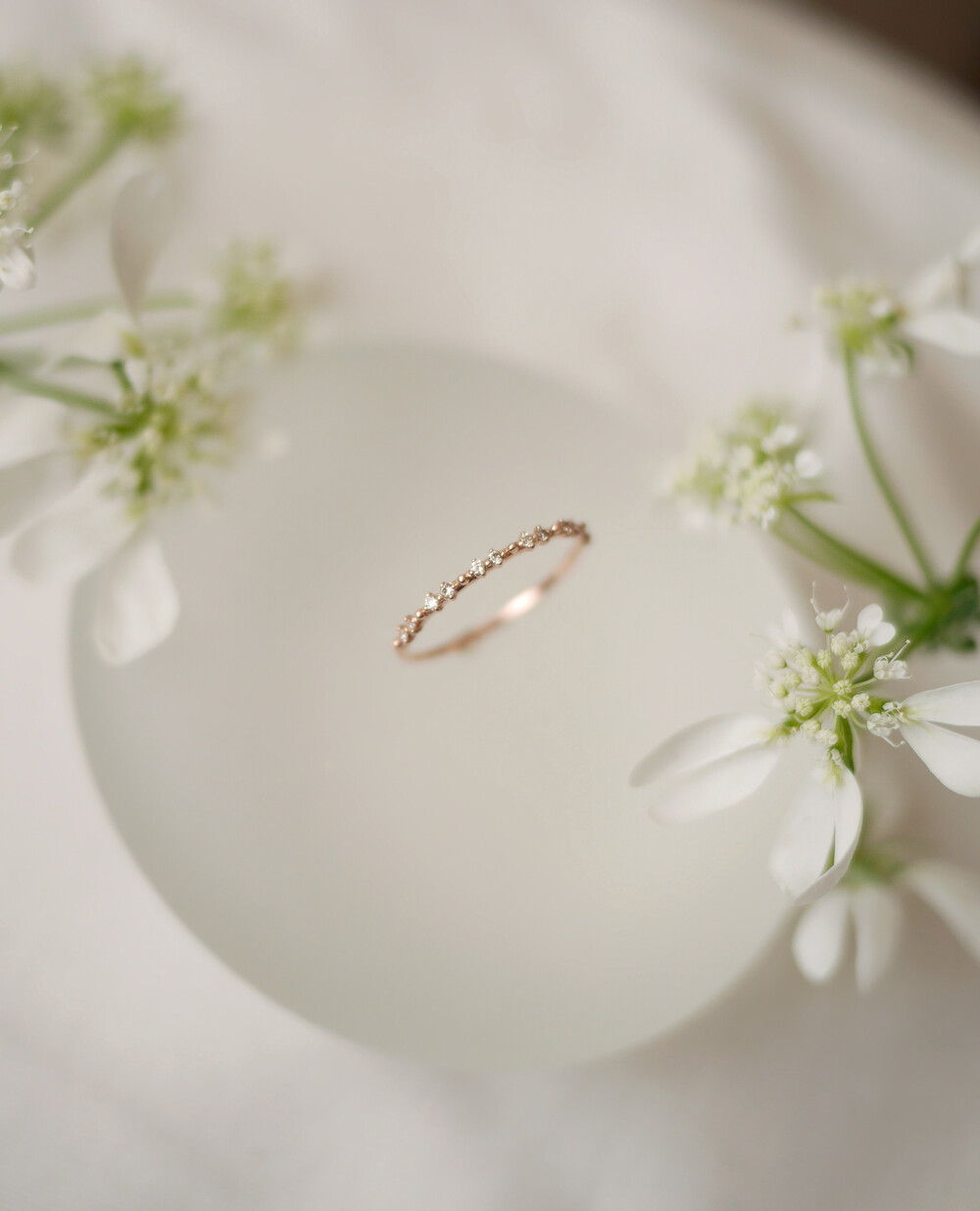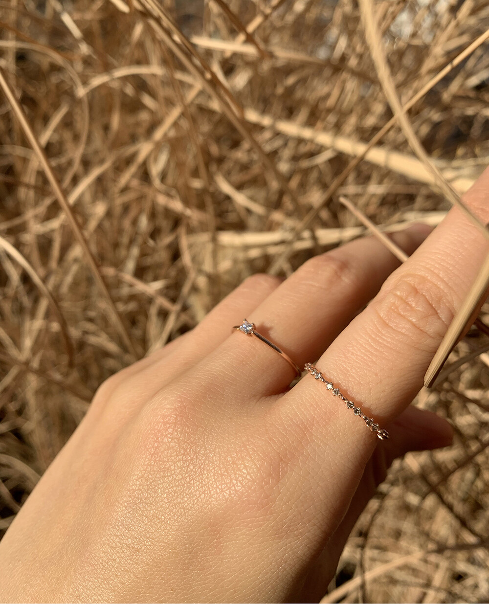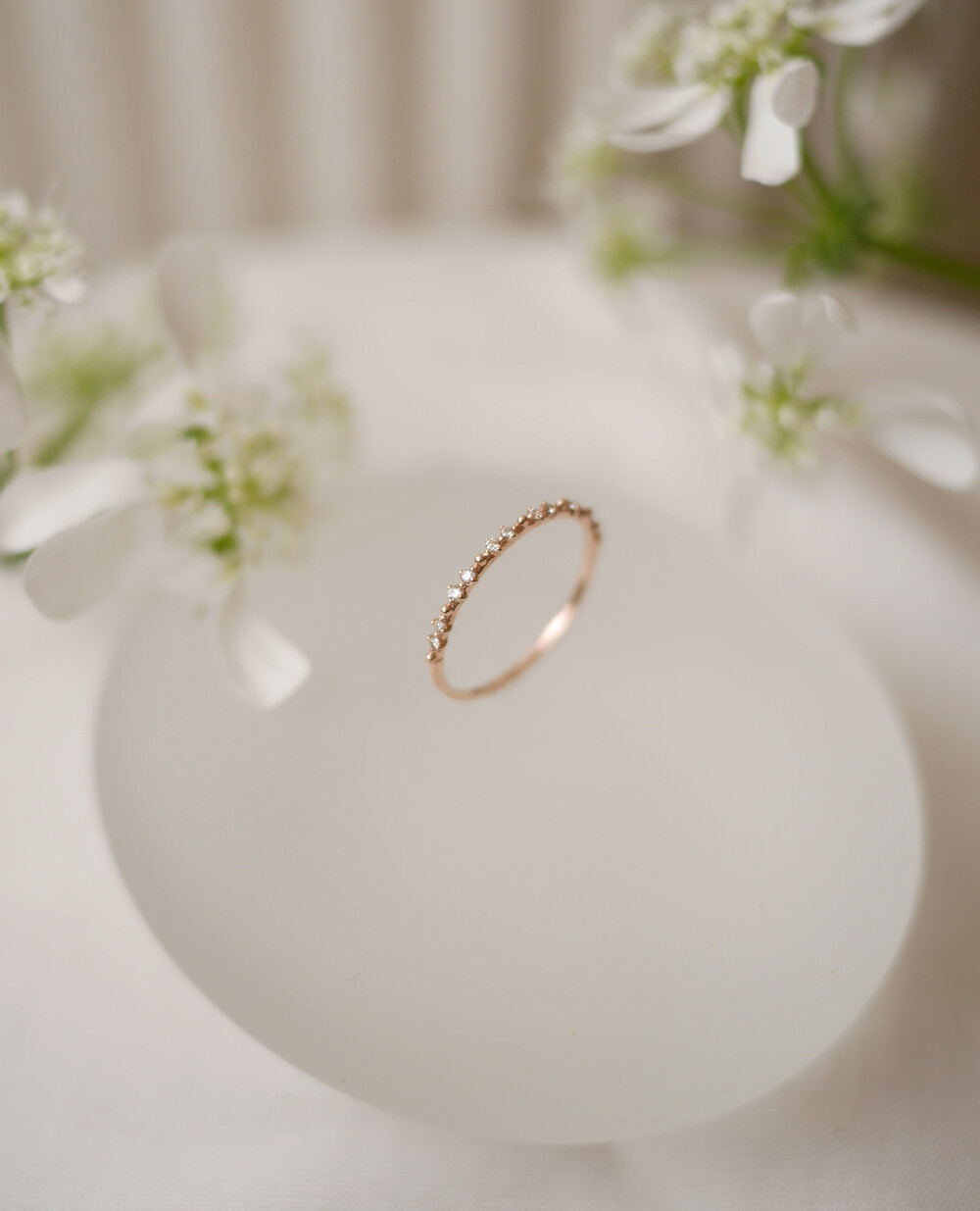 떨어지는 빗방울처럼 잔잔하게 세팅된 다이아몬드의 반짝임이 아름다운 반지입니다