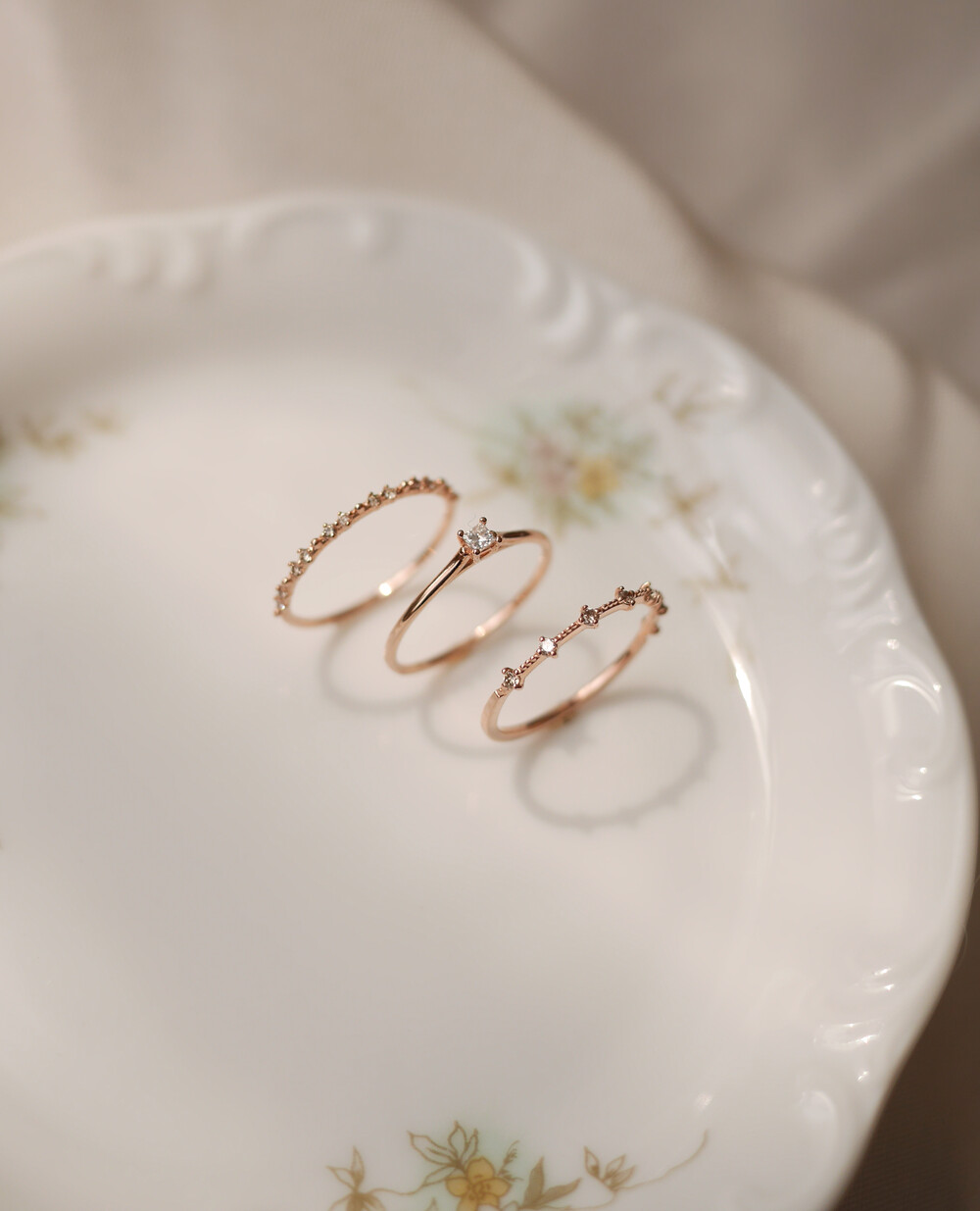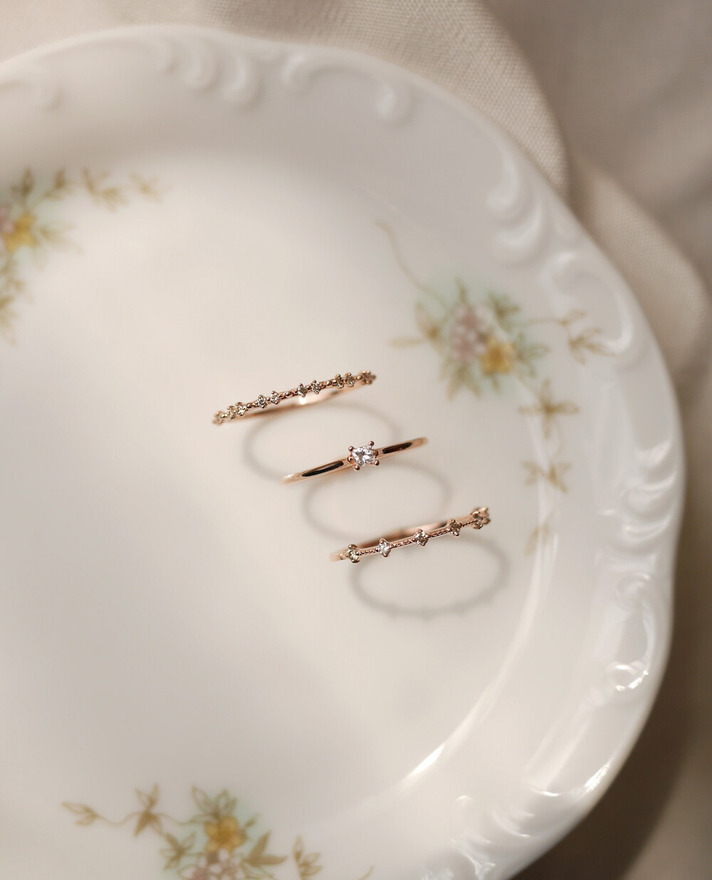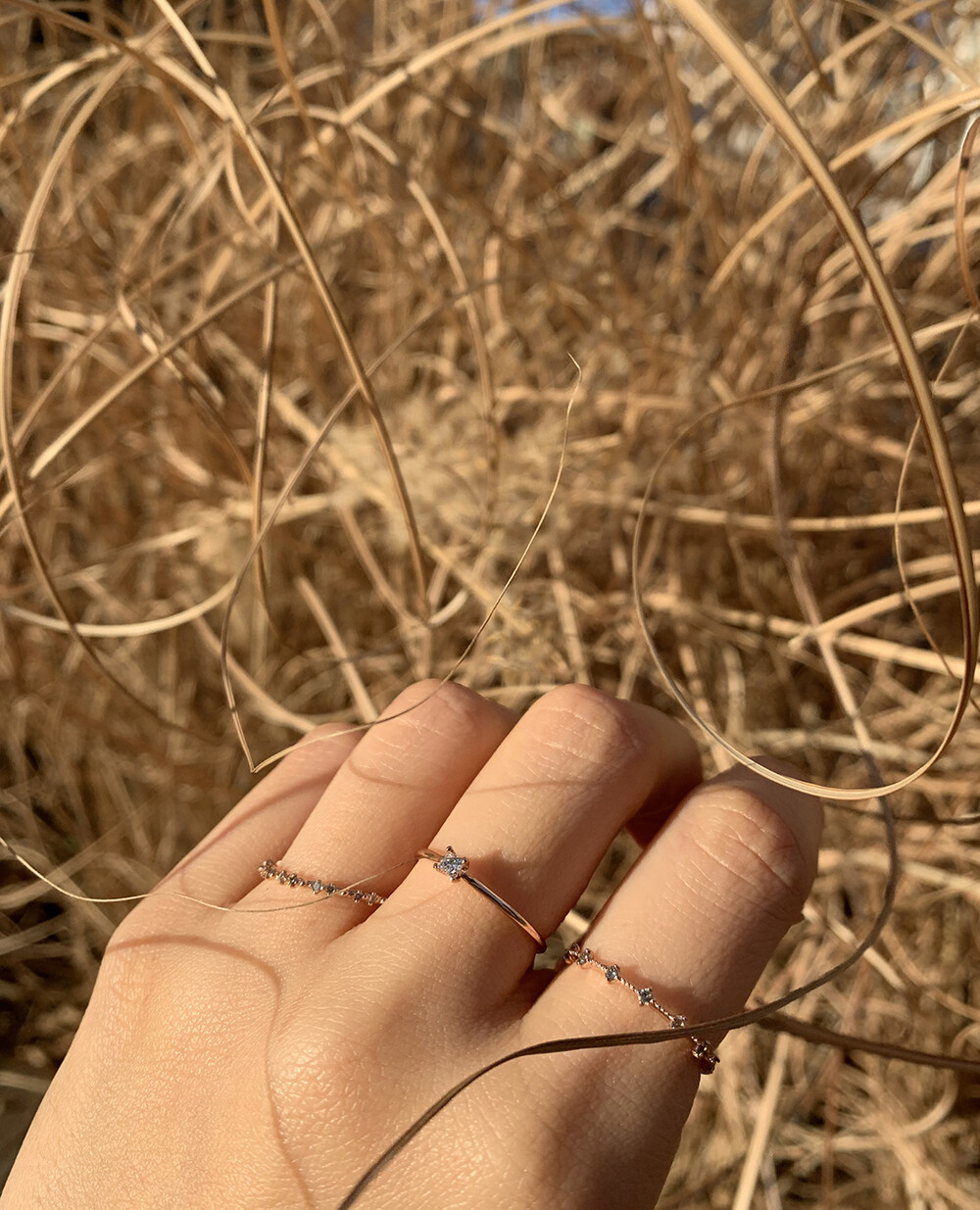 떨어지는 빗방울처럼 잔잔하게 세팅된 다이아몬드의 반짝임이 아름다운 반지입니다