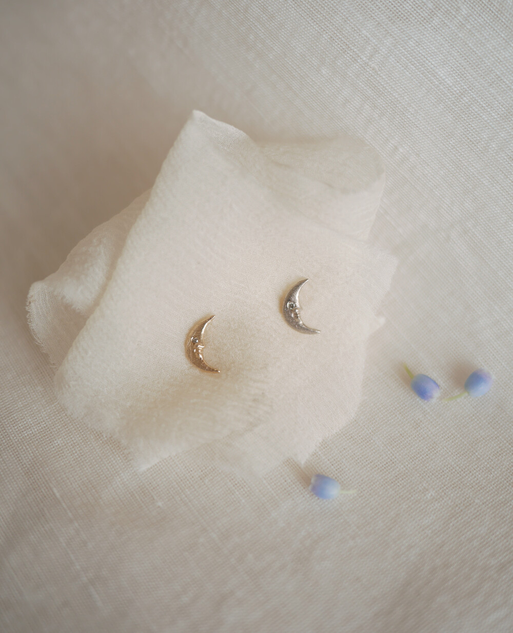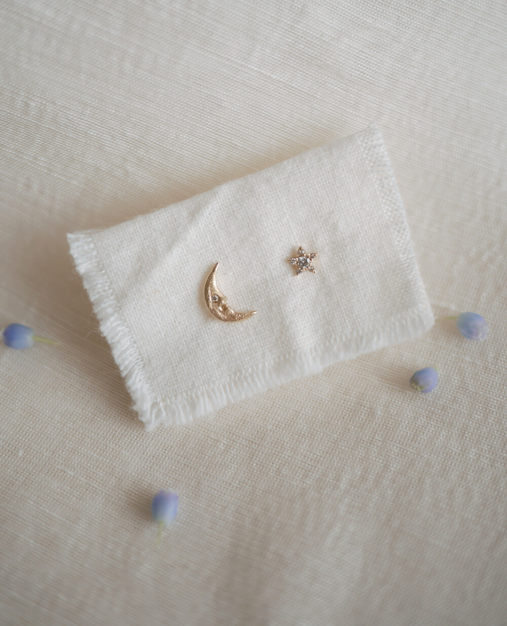 반짝이는 눈을 가진 하현달의 모습을 담은 스터드입니다