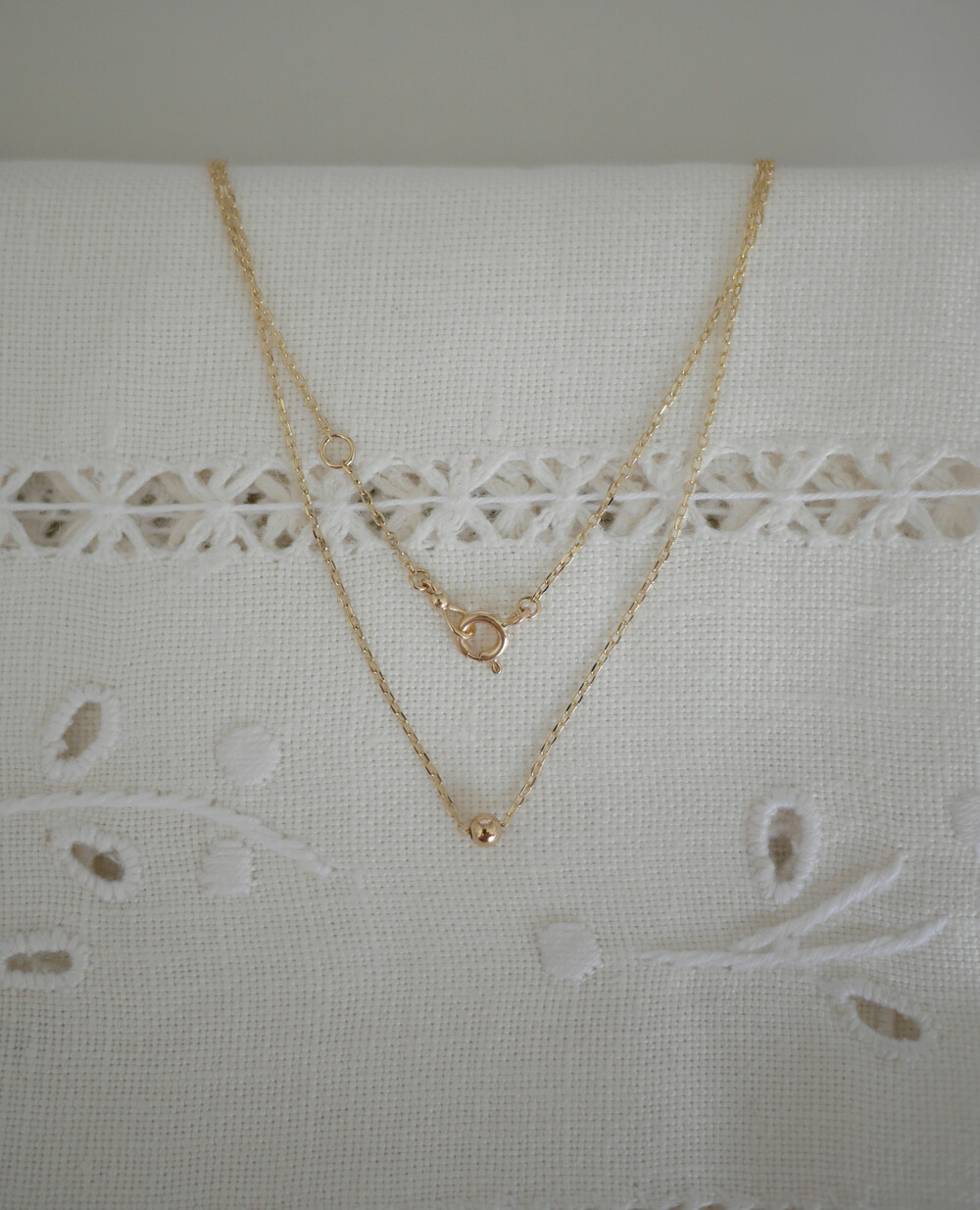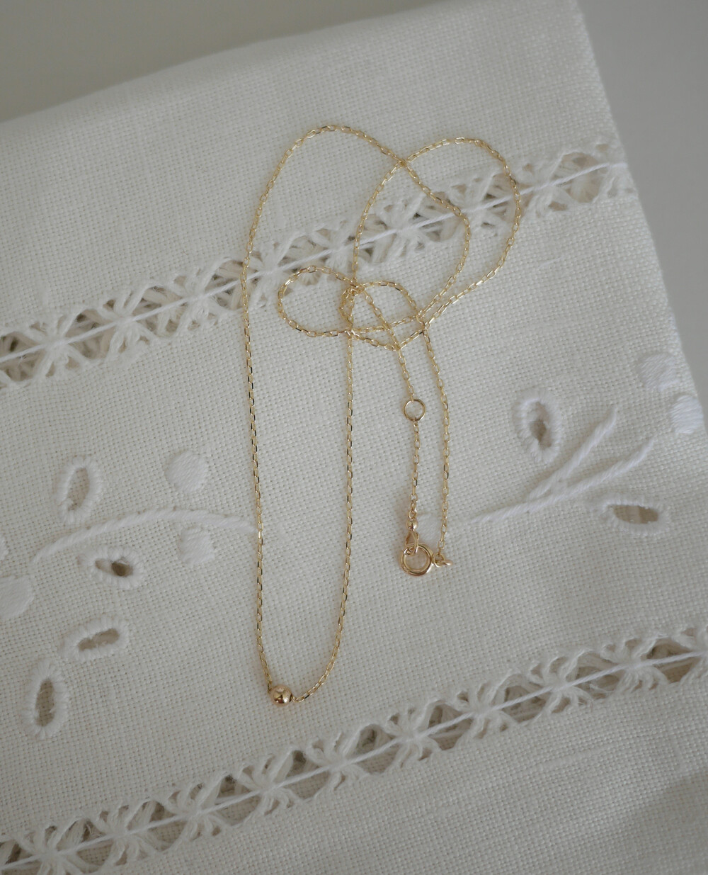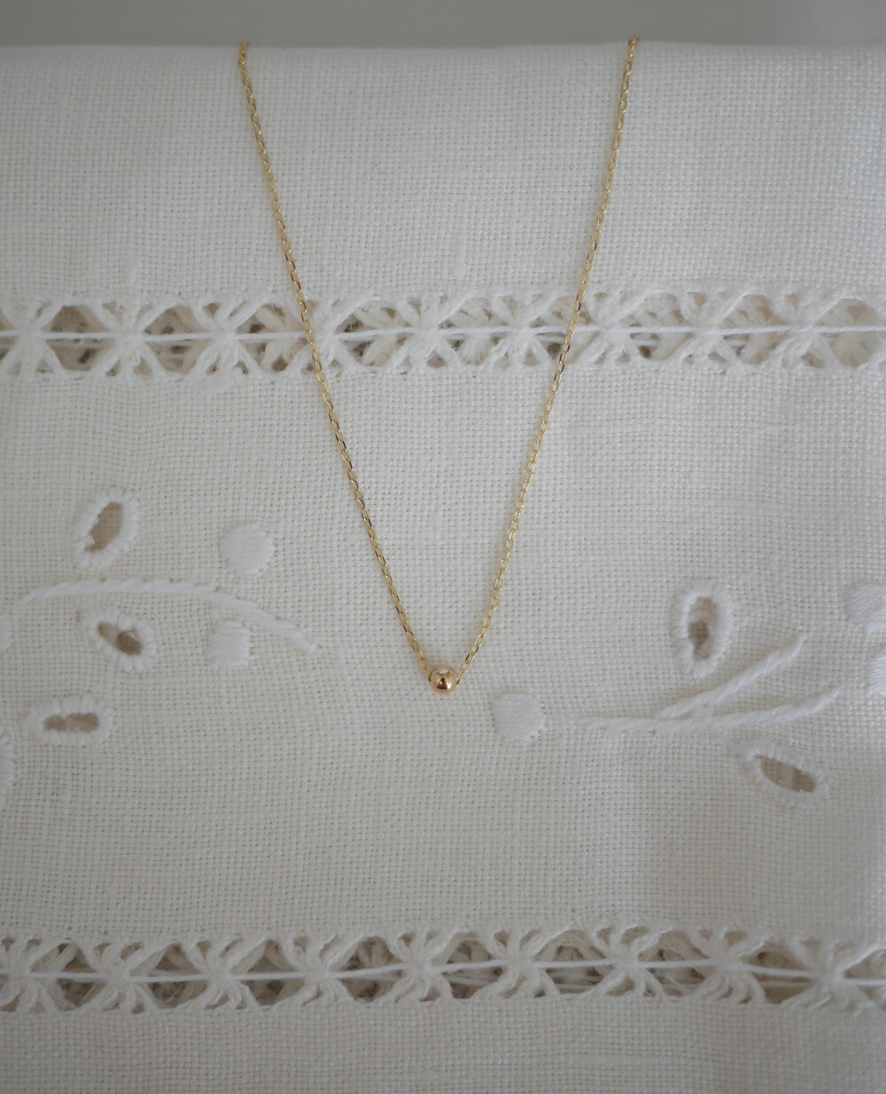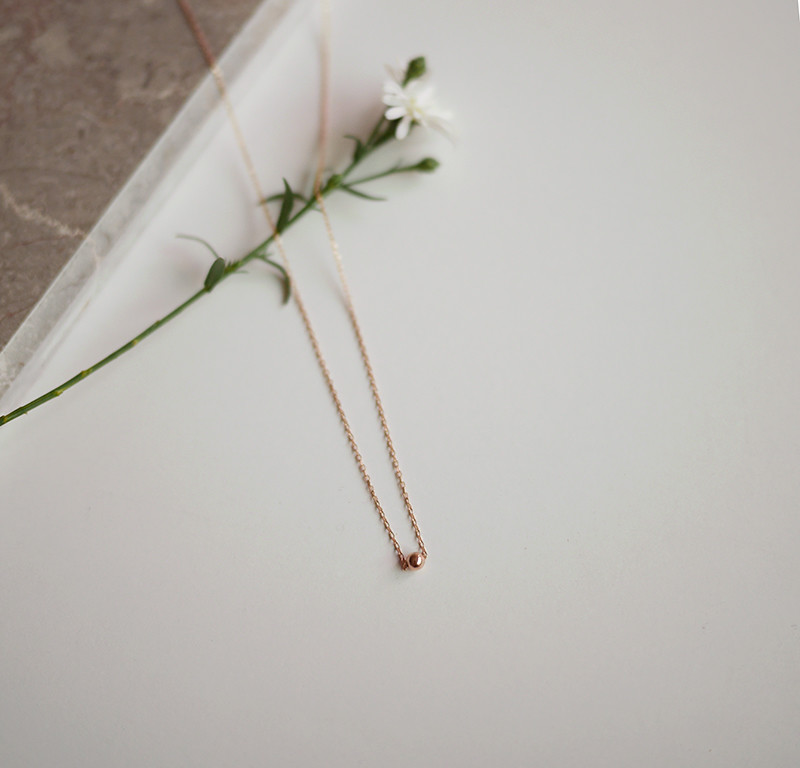 작은 골드 구슬이 반짝이는 체인에 걸려있는 목걸이 입니다