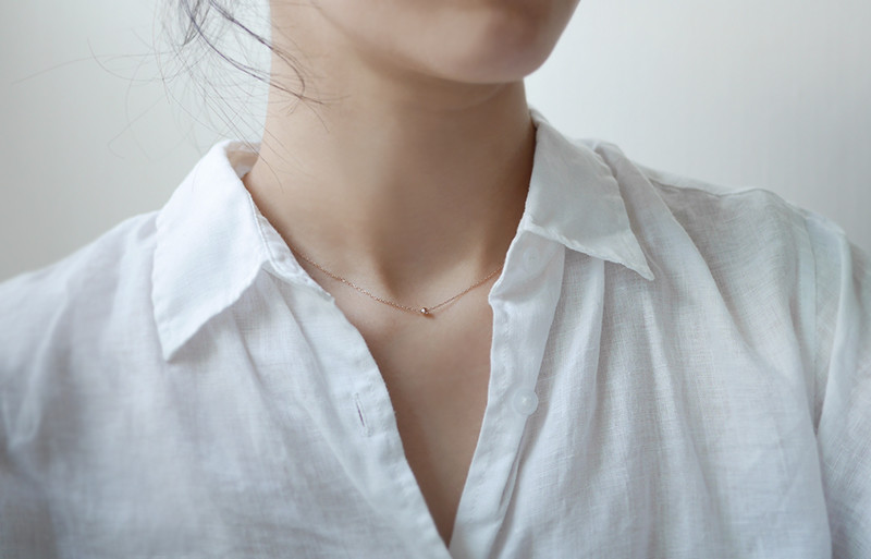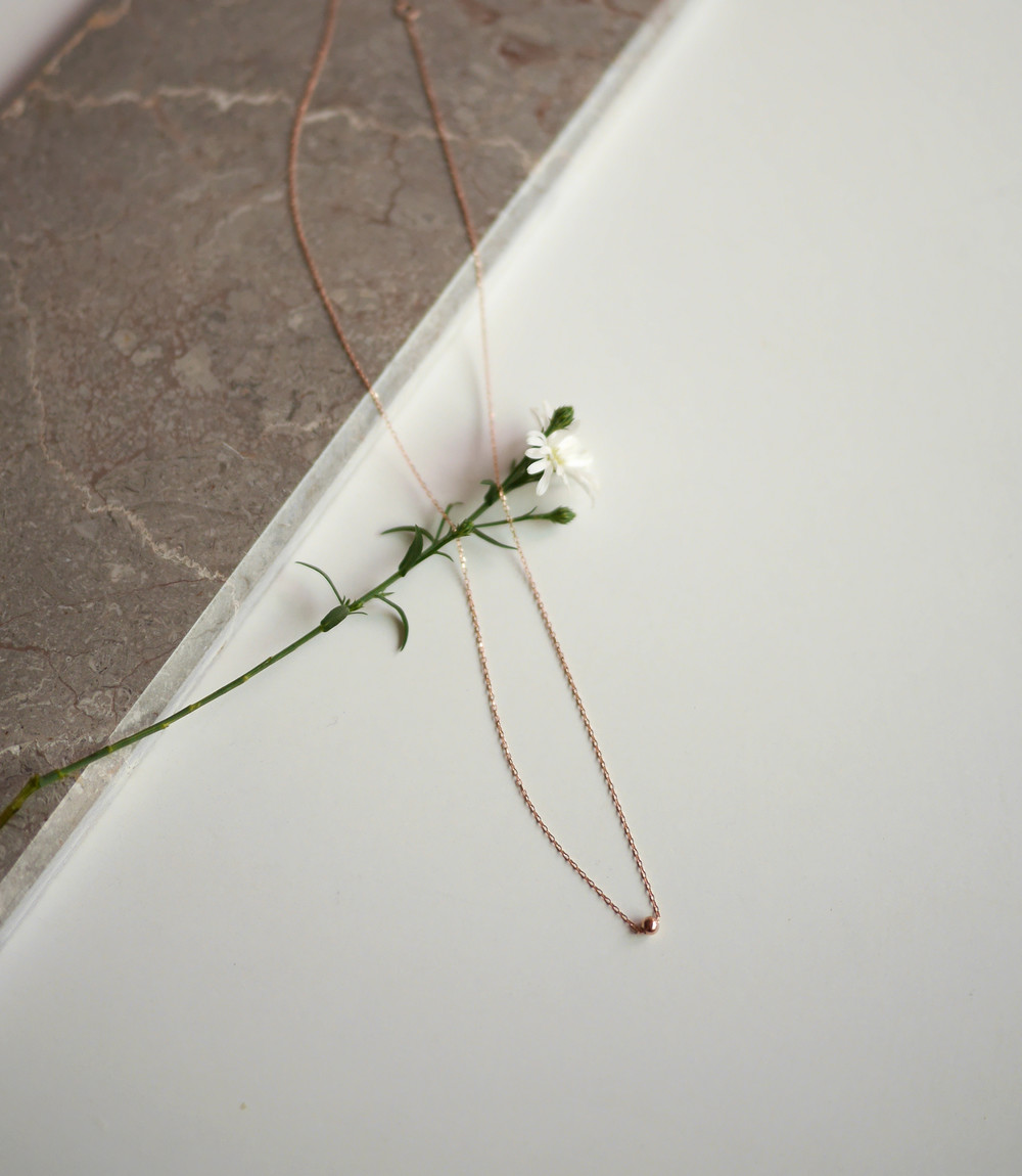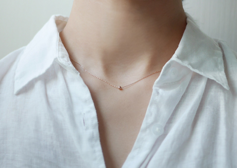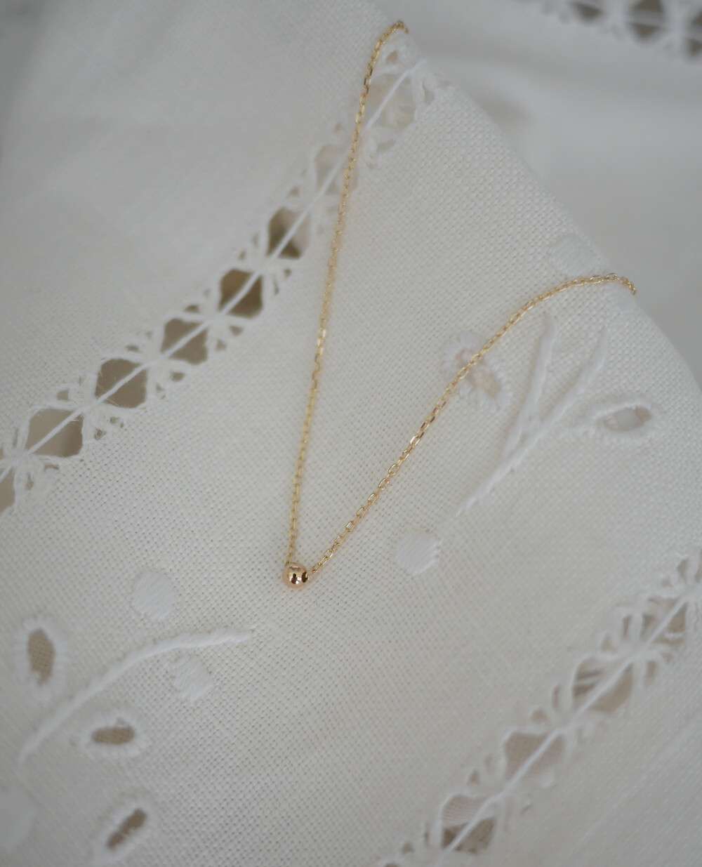 작은 골드 구슬이 반짝이는 체인에 걸려있는 목걸이 입니다