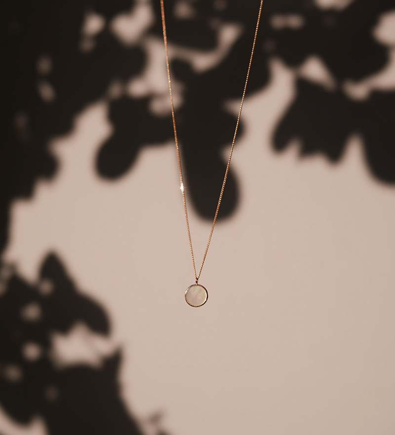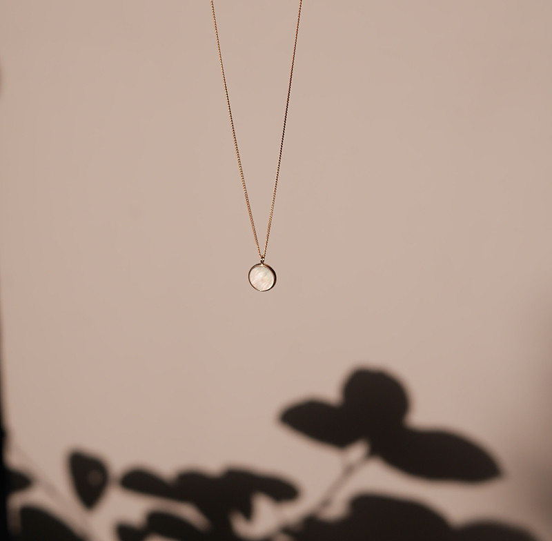 은은한 달빛을 닮은 자개를 세팅한 목걸이입니다