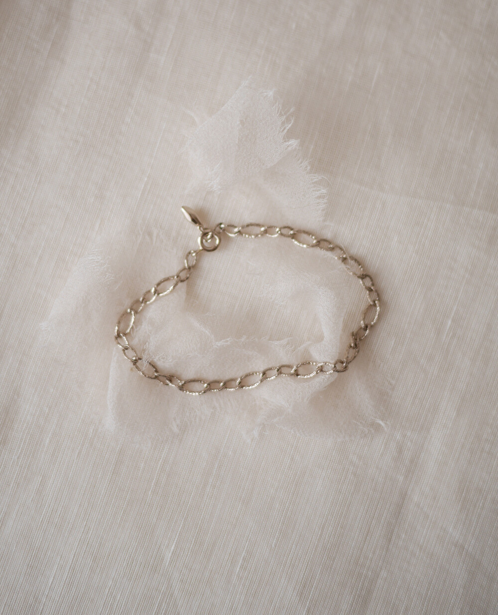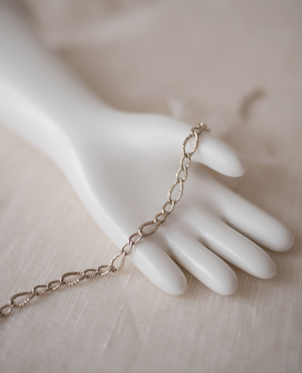 나뭇결이 새겨진 유닛으로 연결된 팔찌입니다