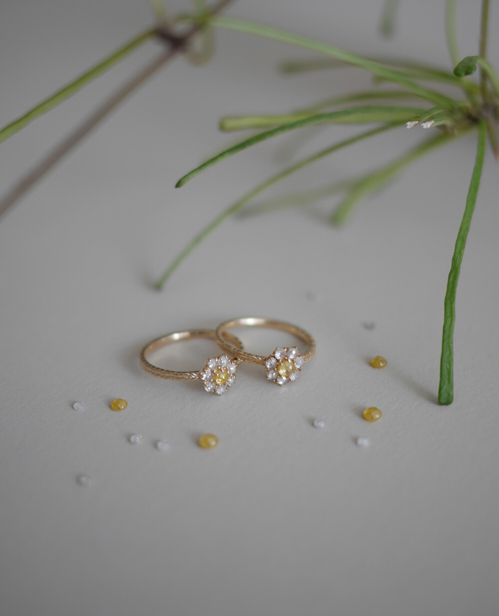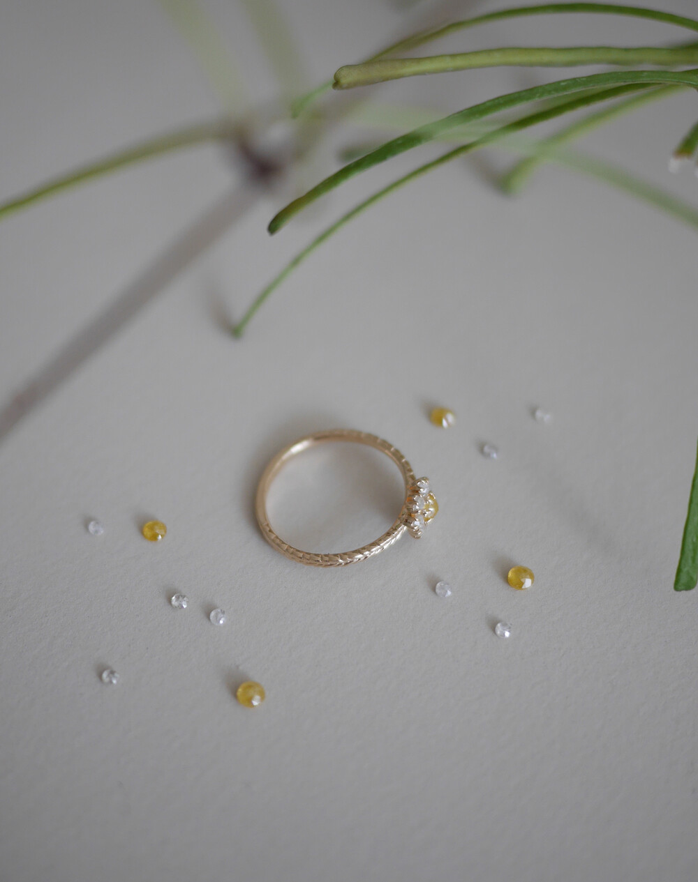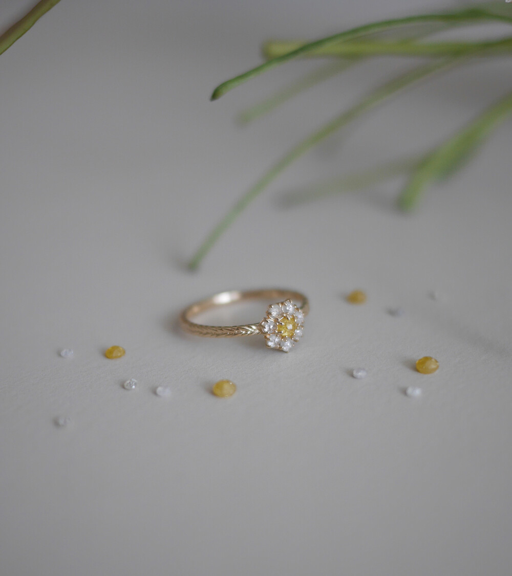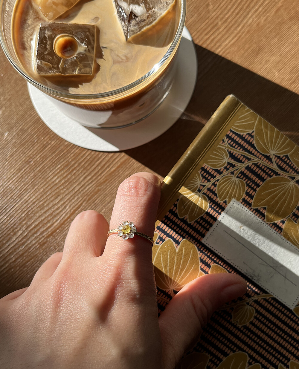 러프 다이아몬드로 데이지 한송이를 틔워낸 반지입니다