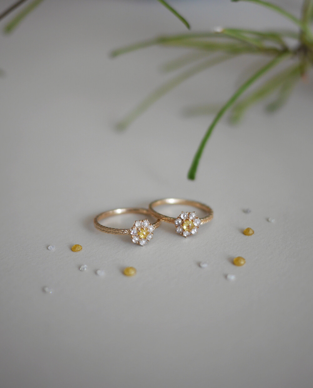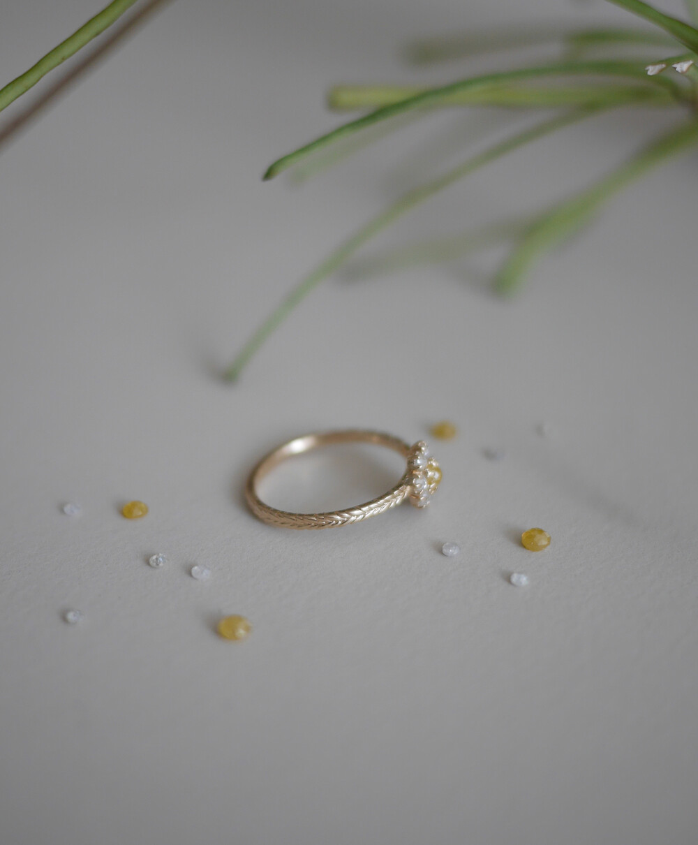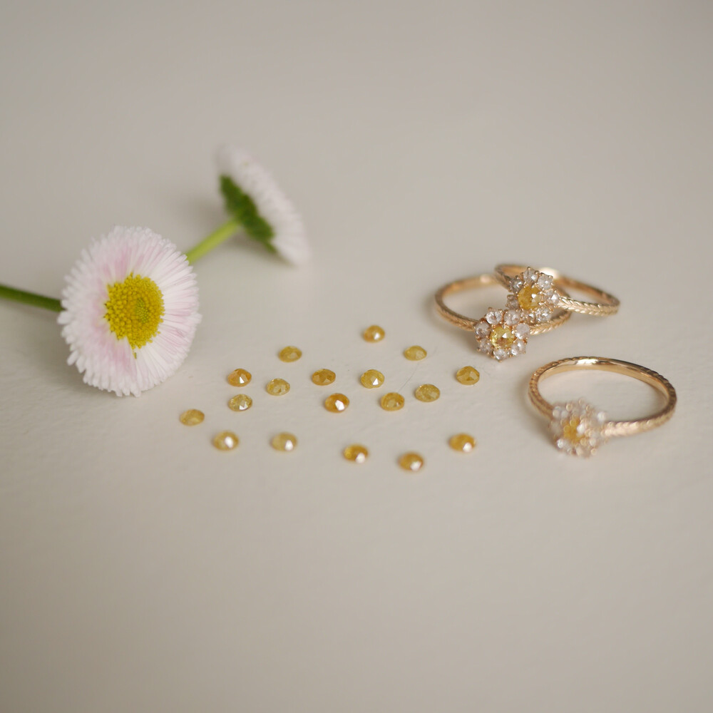 러프 다이아몬드로 데이지 한송이를 틔워낸 반지입니다