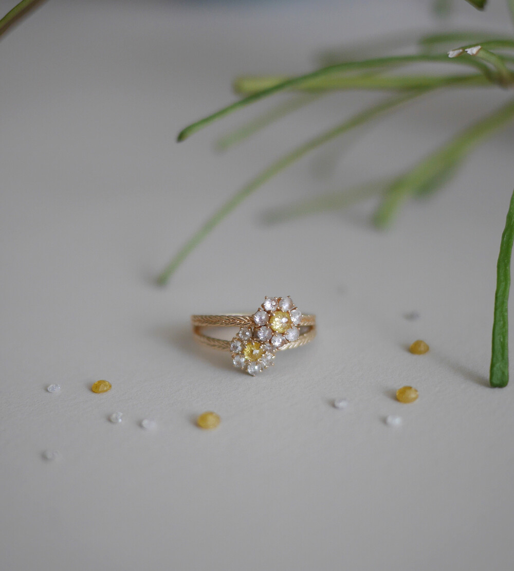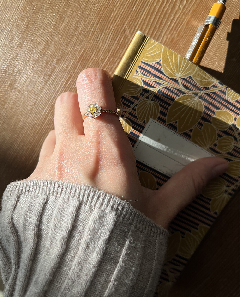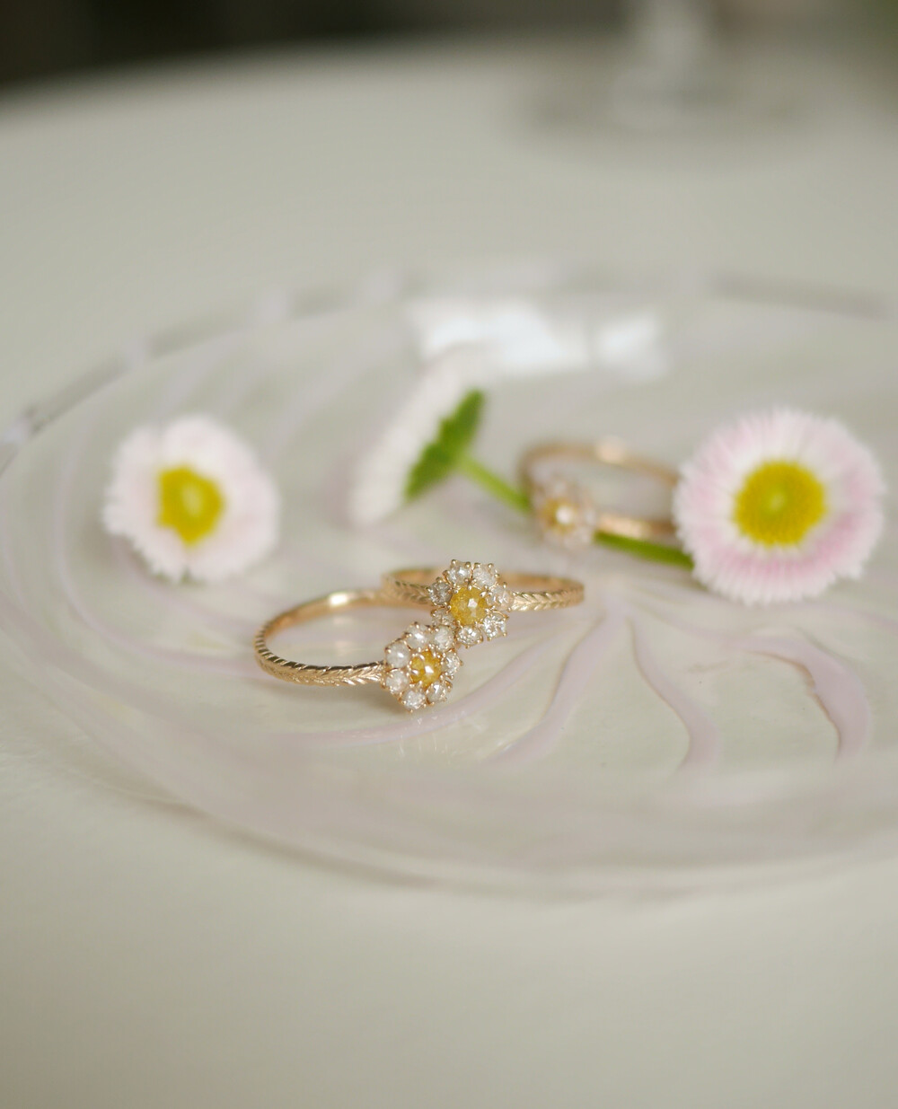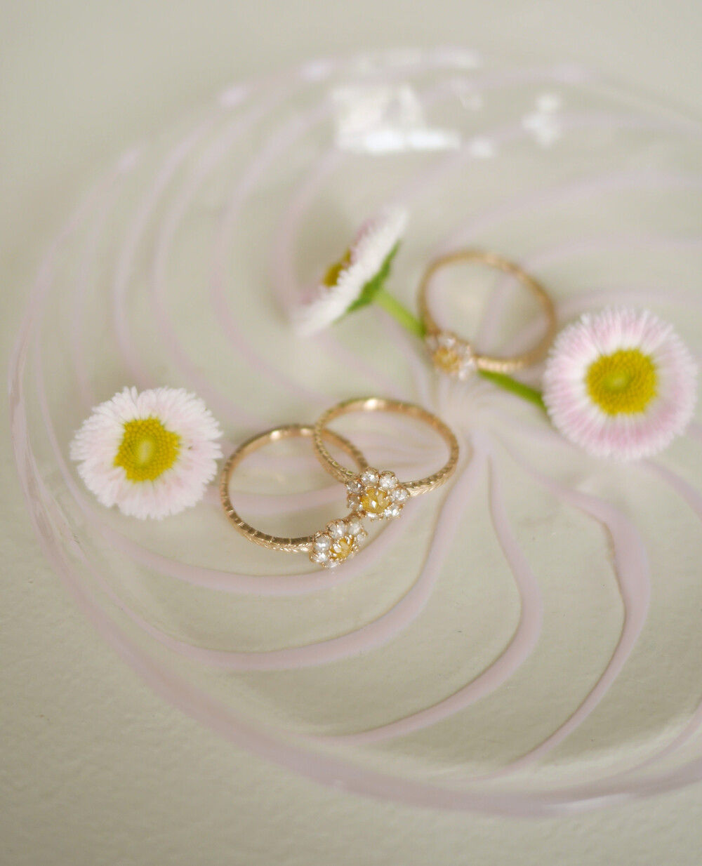 러프 다이아몬드로 데이지 한송이를 틔워낸 반지입니다
