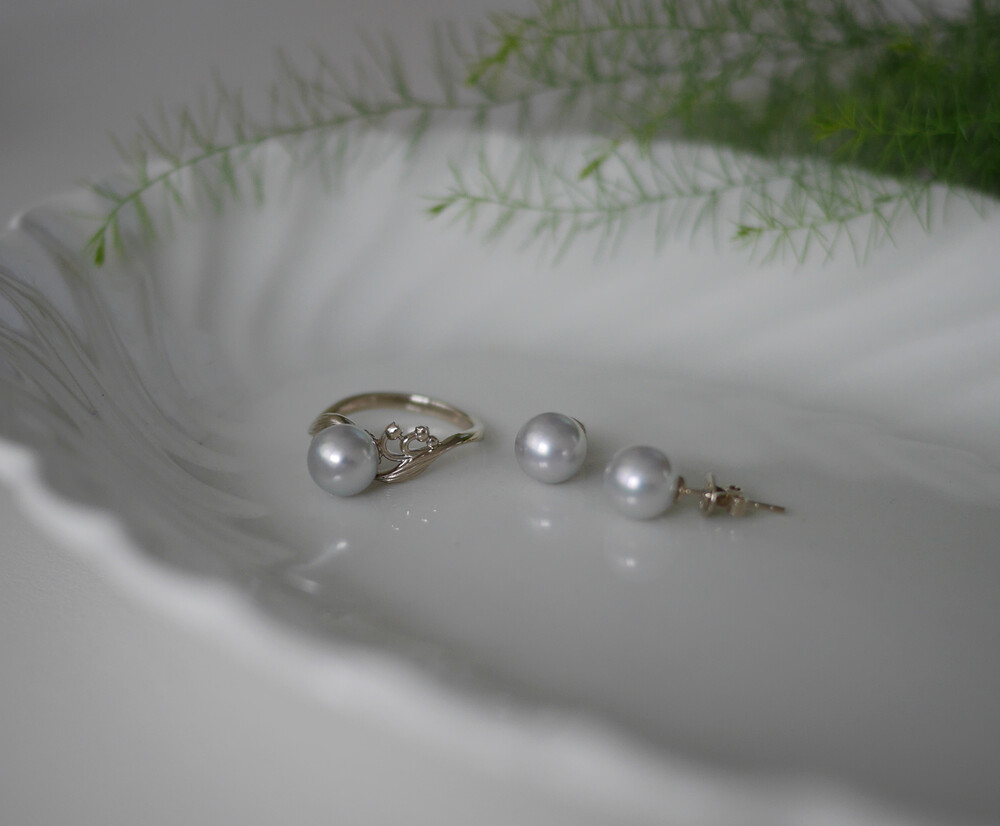 자연 그대로의 블루 컬러를 띈 아코야 진주를 세팅한 반지입니다