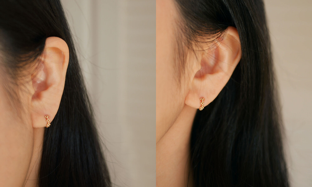 작은 크기로 귓볼에 단정하게 붙는 링타입의 귀걸이입니다