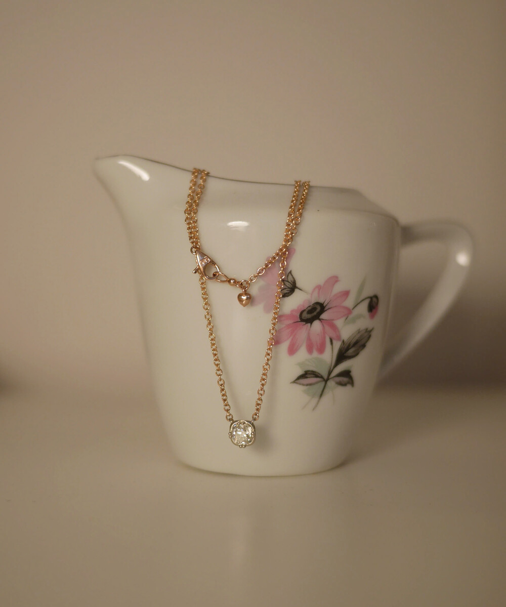 팬던트는 14k 샴페인골드, 체인파트는 로즈골드로 하트 챰을 달아 완성했습니다