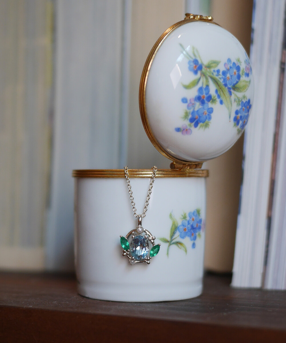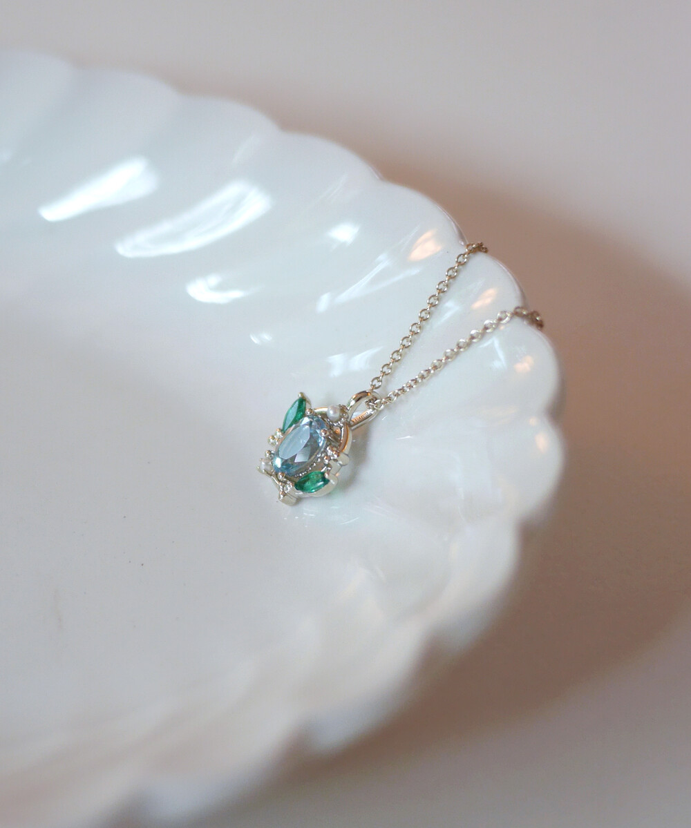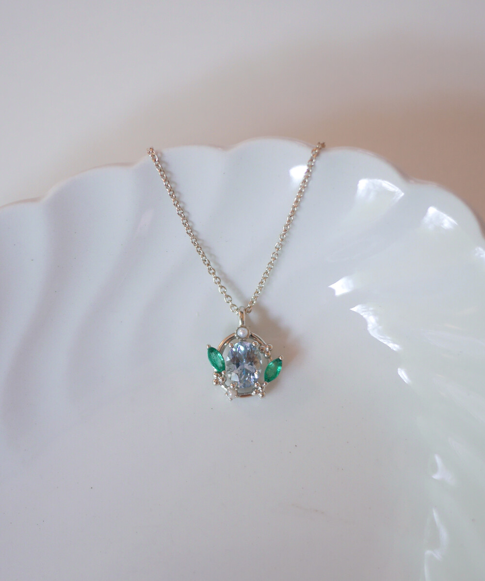 맑은 호수같은 아쿠아마린을 중심으로 에메랄드와 진주로 아름다운 꽃덩쿨을 둘러주었습니다