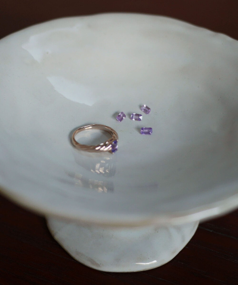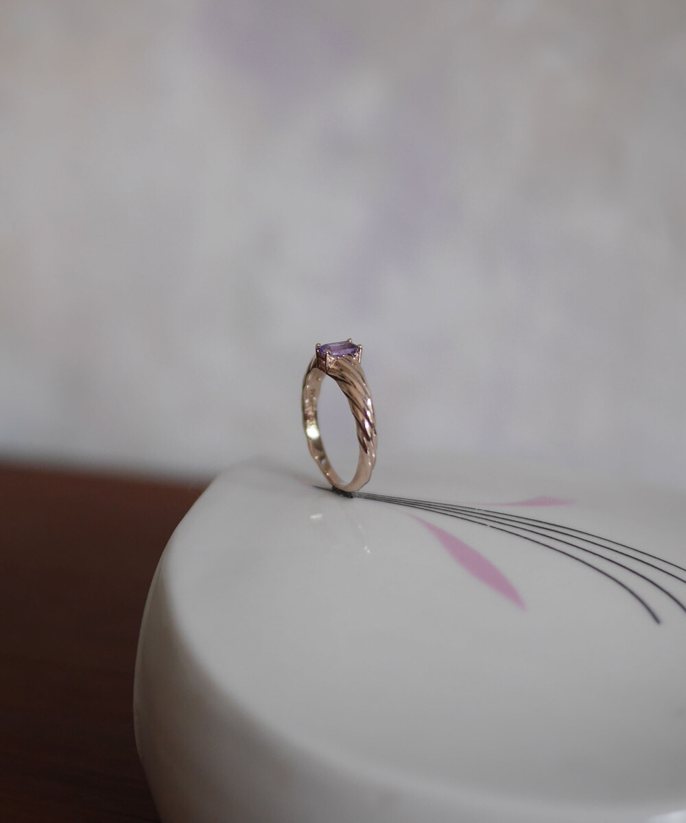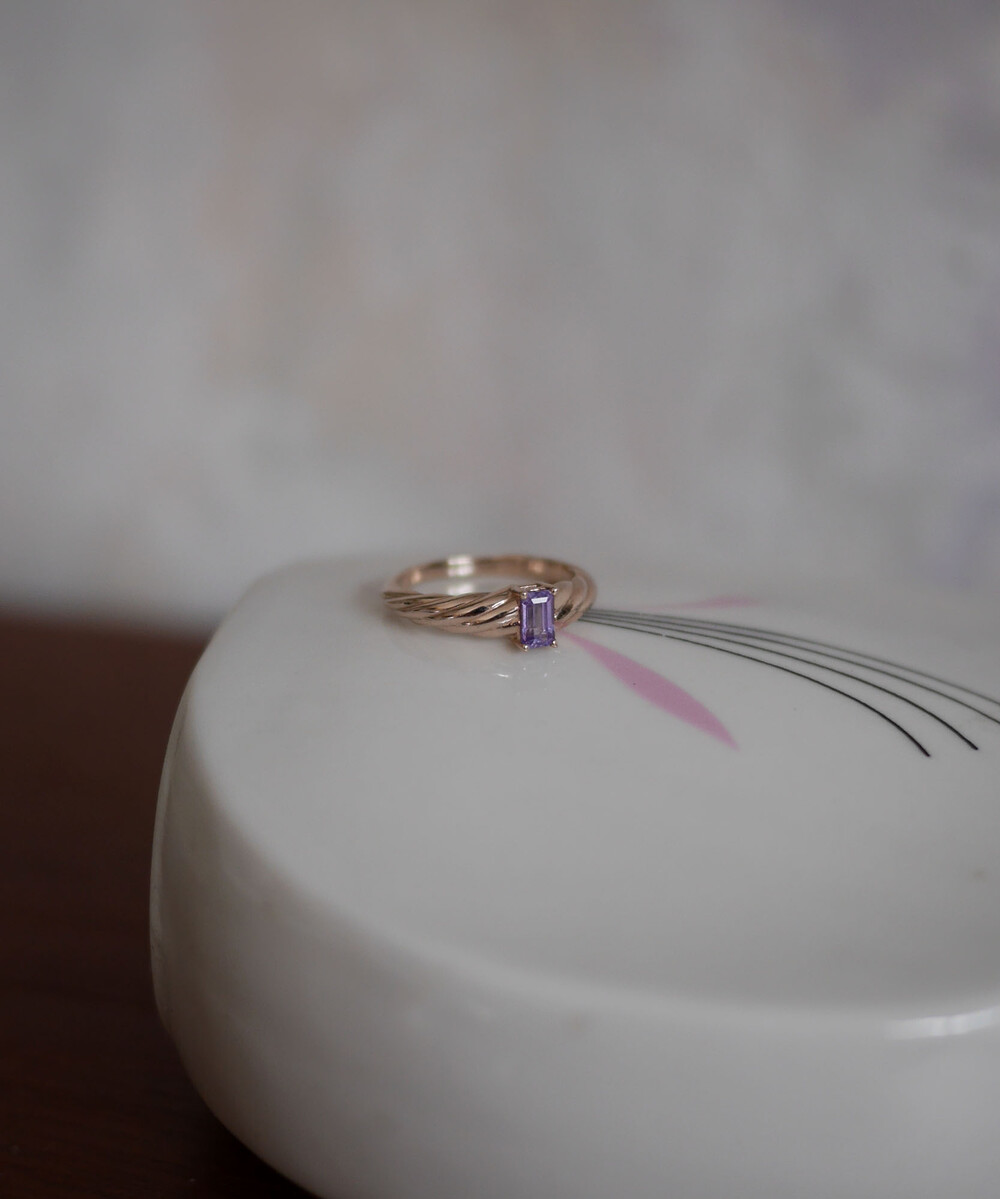 croissant ring with purple sapphire
