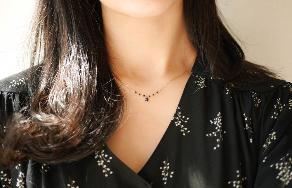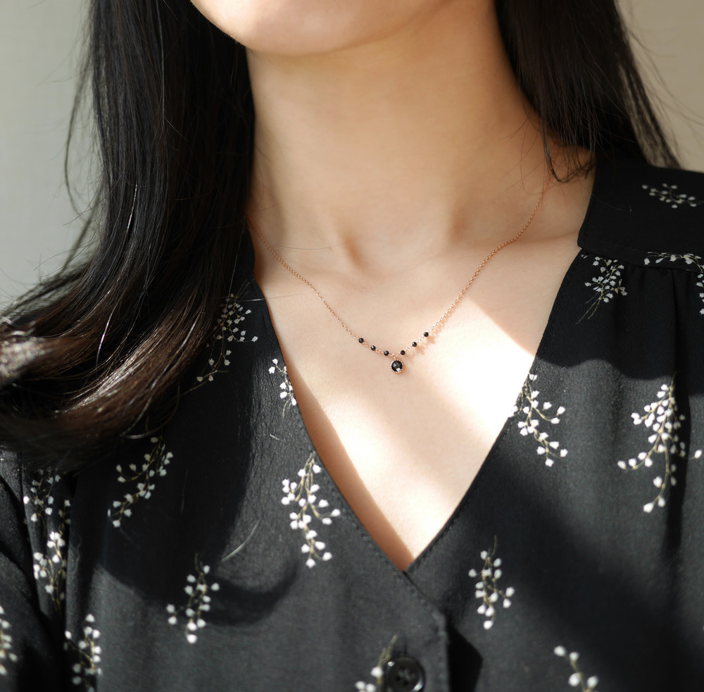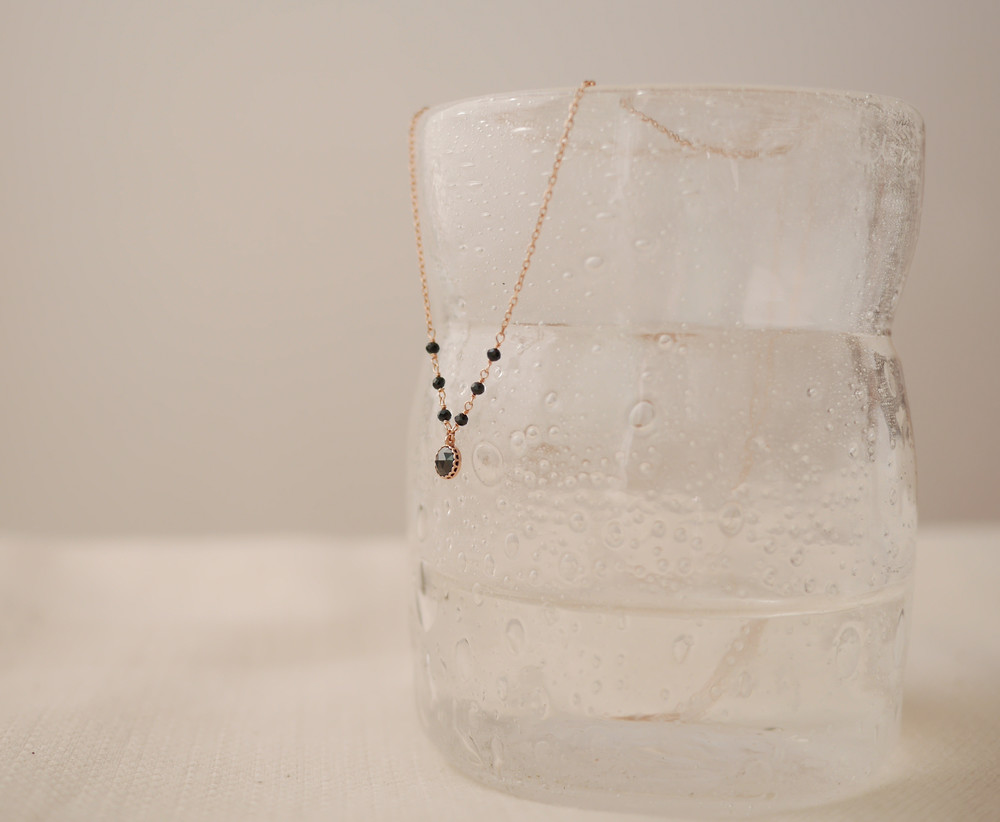 블랙 러프 다이아몬드가 세팅된 목걸이입니다.