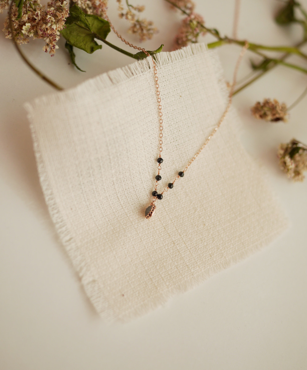 기본적인 동그란 모양에 블랙 컬러로 베이직하지만 블랙 스피넬 비드로 디테일을 넣어 섬세함을 더했습니다.