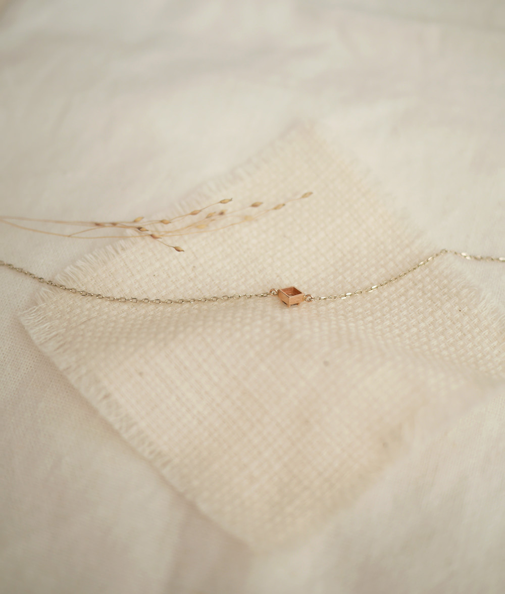 마름모 형태 팬던트는 핑크골드, 체인부터 잠금장식 까지는 샴페인 골드의 투톤으로