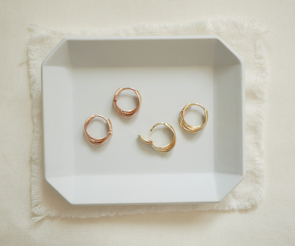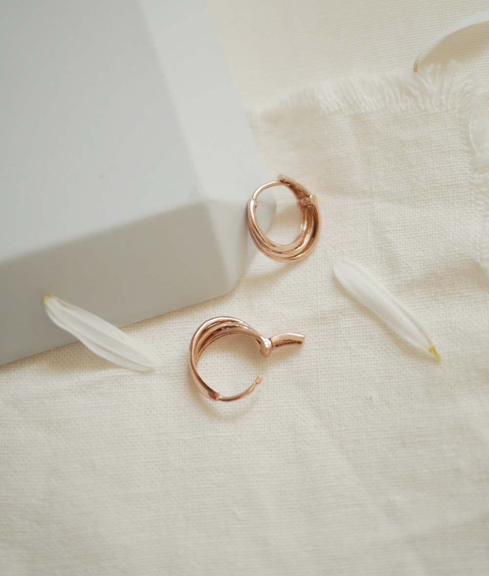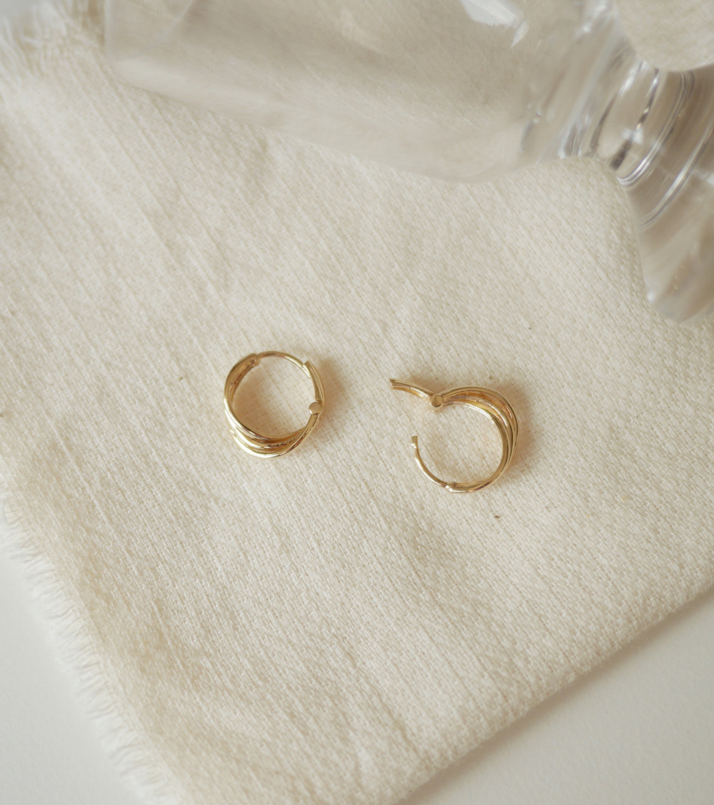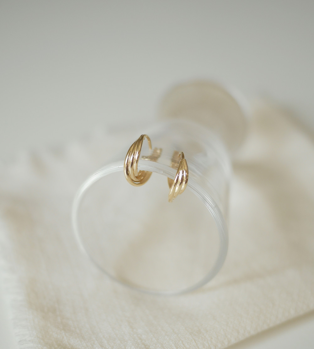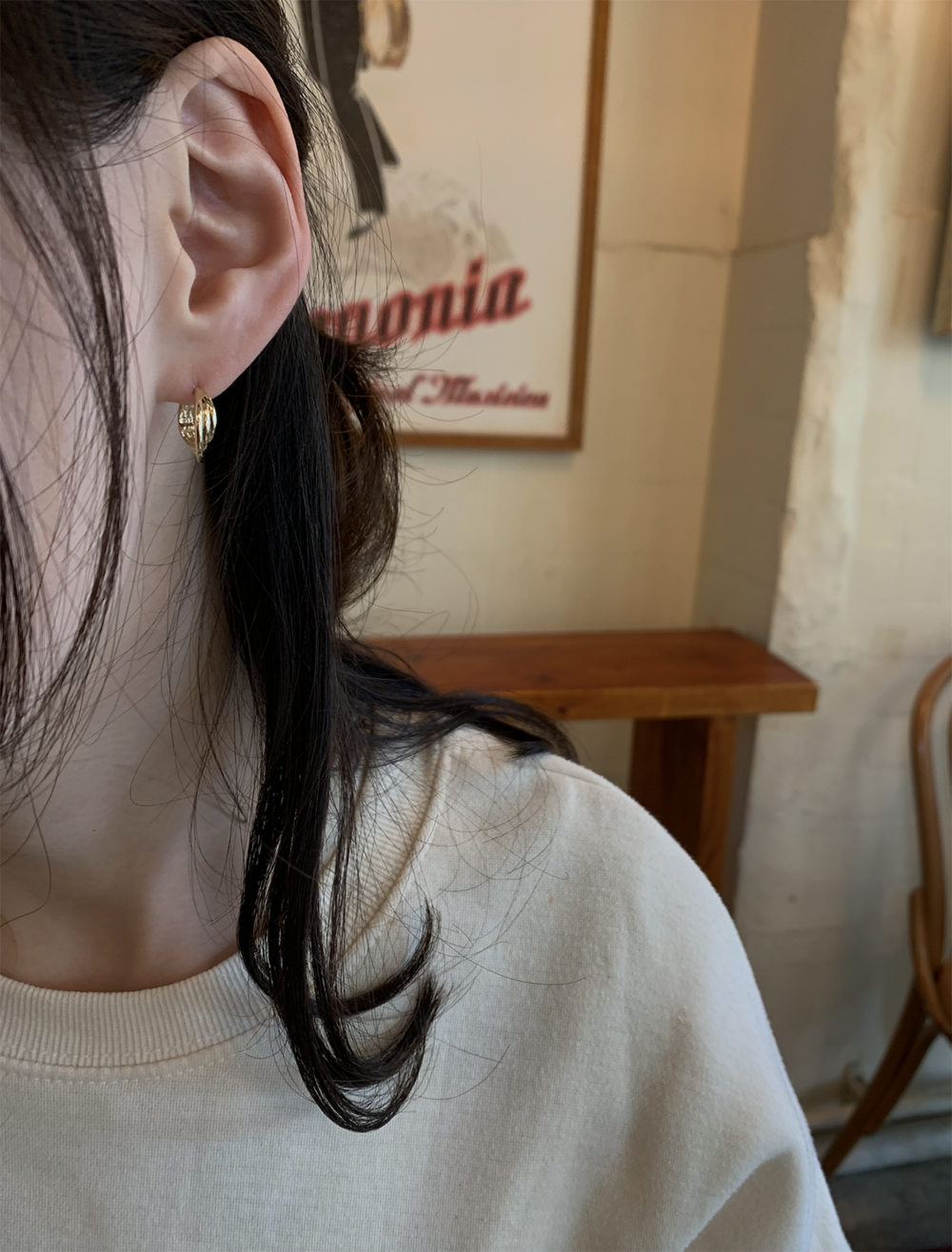 부드러운 곡선 세개가 모여 소라 껍데기같은 모양의 후프 귀걸이입니다.
