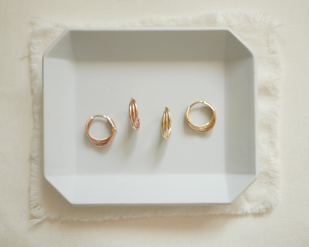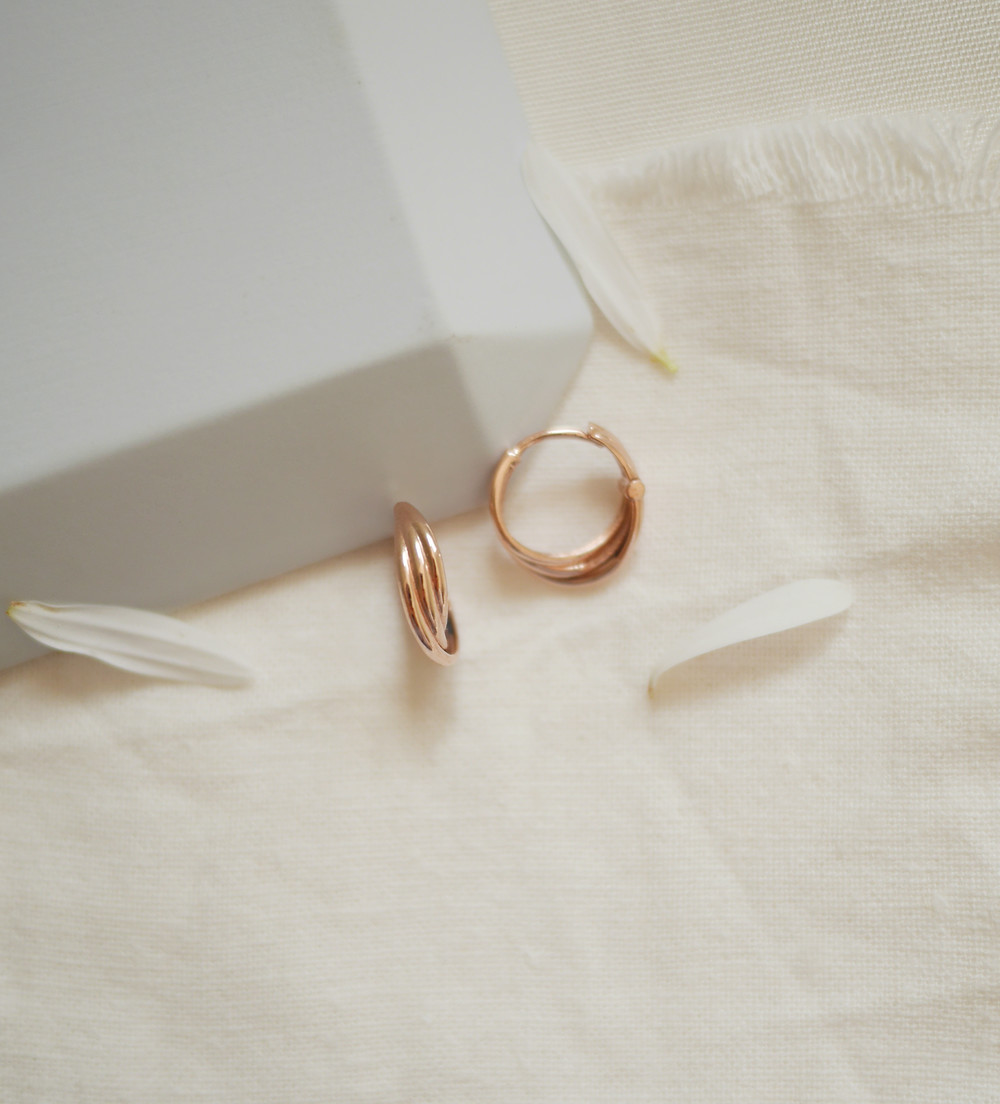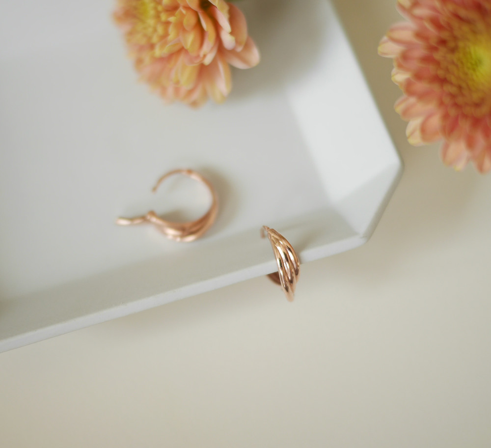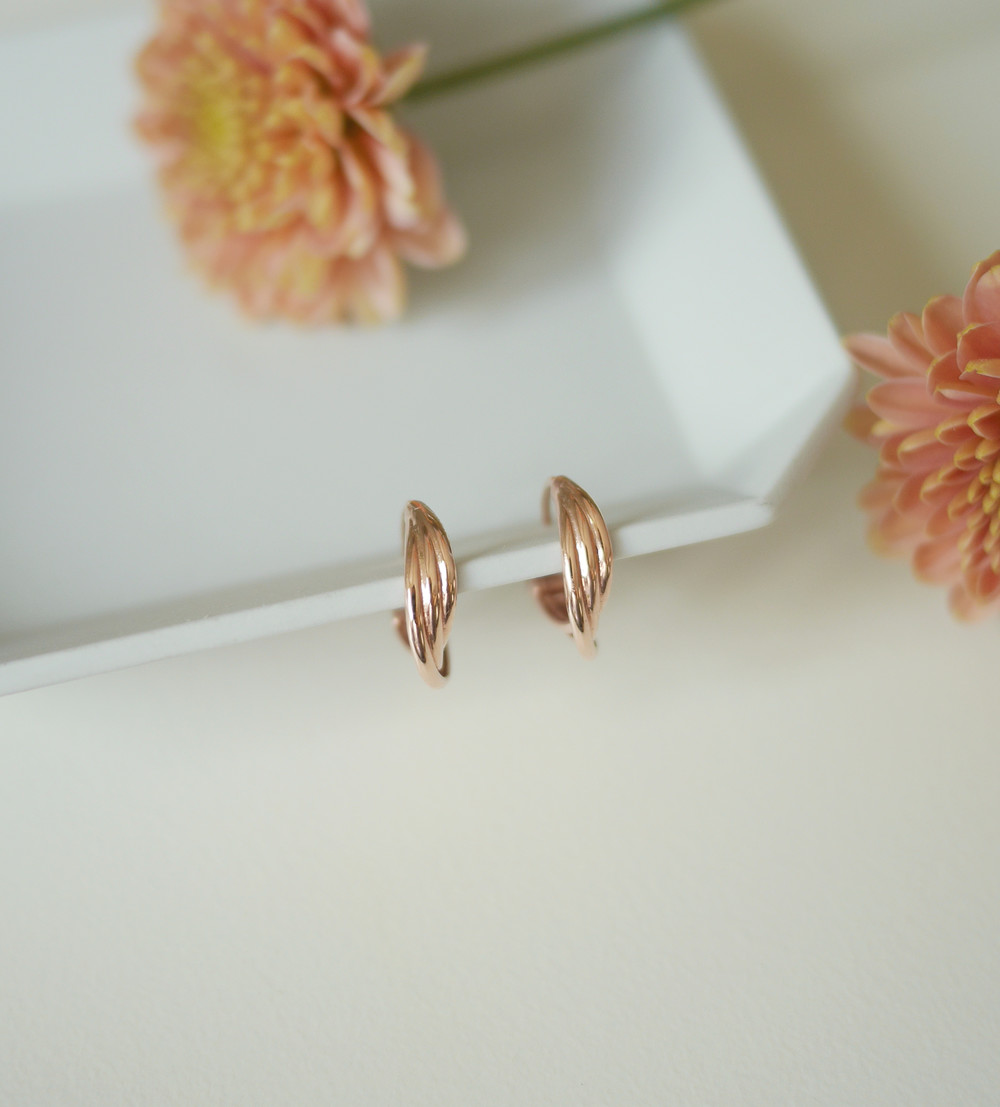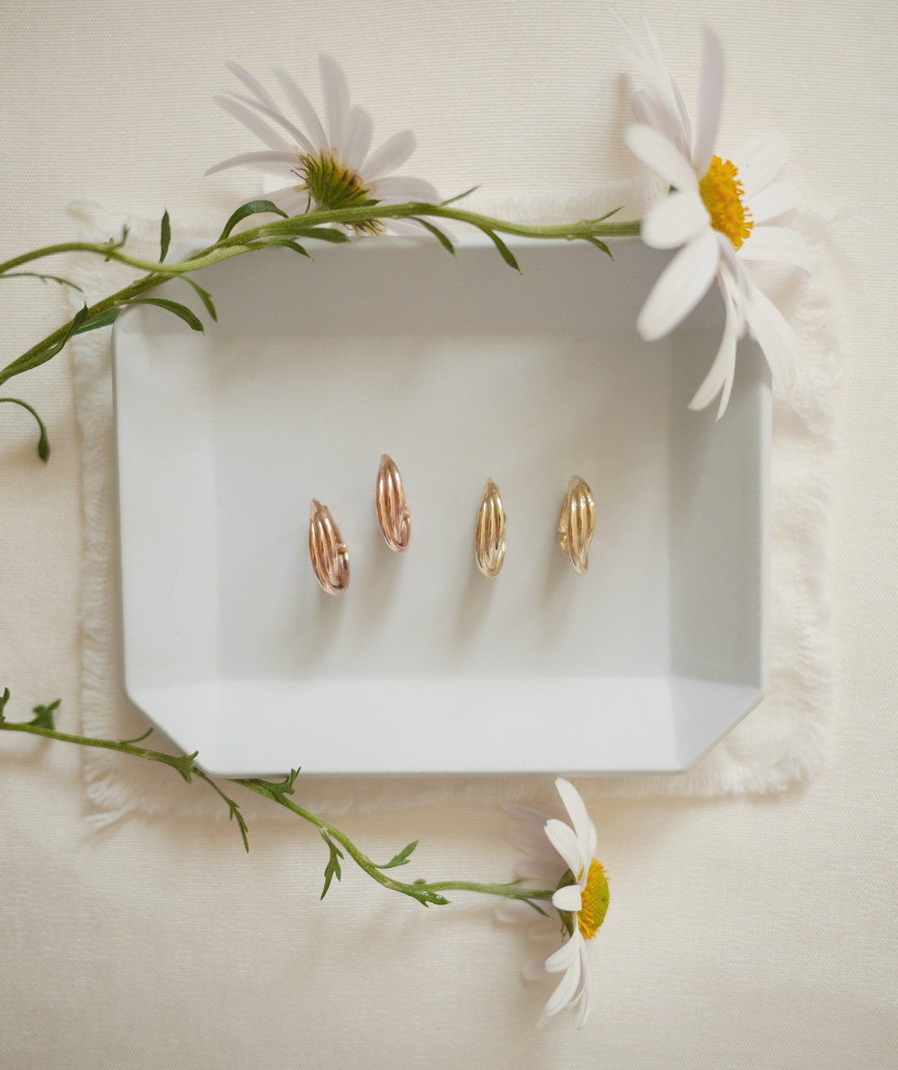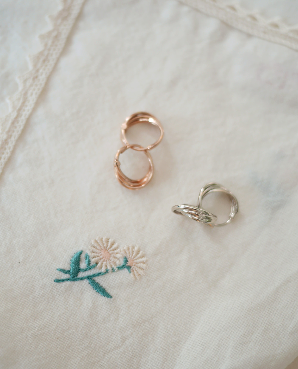 부드러운 곡선 세개가 모여 소라 껍데기같은 모양의 후프 귀걸이입니다.