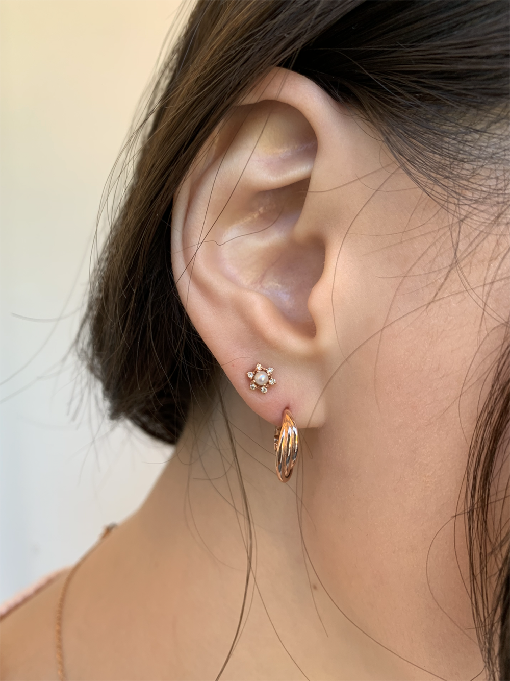 이 귀걸이는 전체적으로 같은 꼬임을 유지하는 스타일이라 옆에서나 뒤에서 볼 때도 여전히 아름답습니다.
